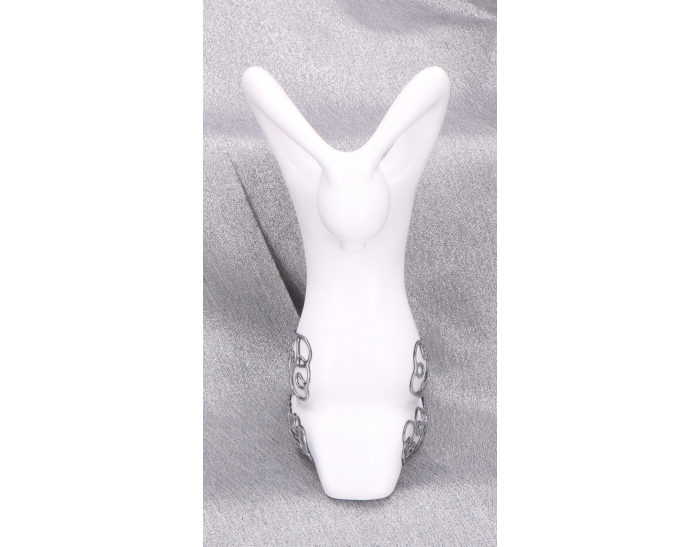 Ceramika jest wypalana dzięki czemu w swojej konsystencji pozostaje mocnym materiałem, trwałym i dość odpornym na stłuczenia w porównaniu do kreacji wyrzeźbionych z gipsu. Wykończenie produktu jest natomiast pokryte srebrnym zdobionym klejem.