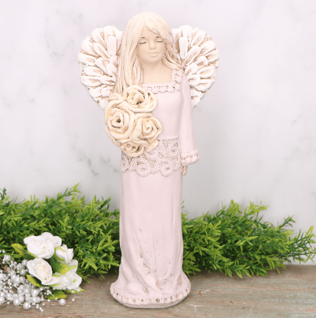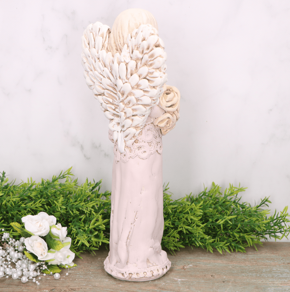 Anioł aniołek gipsowy koronka z kwiatami róż 33cm