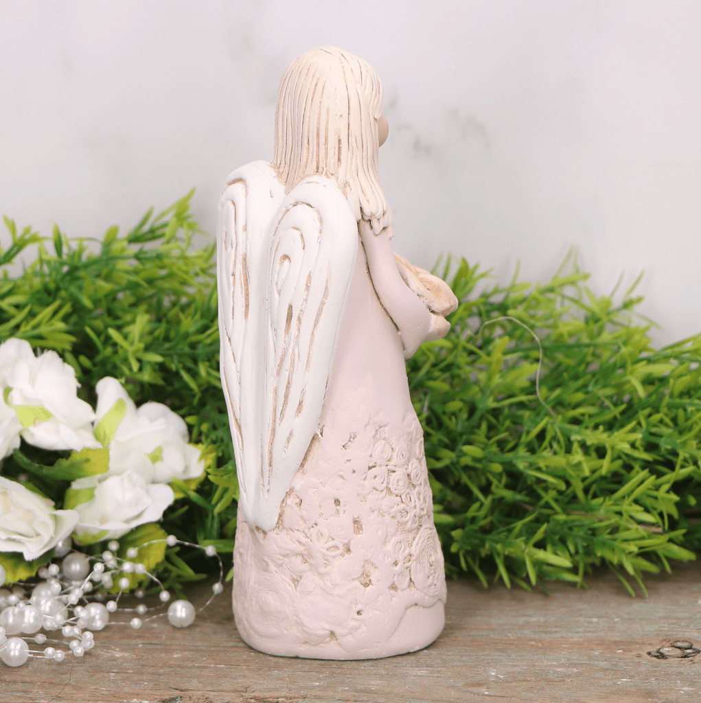 Anioł aniołek gipsowy z kwiatem róż 16cm