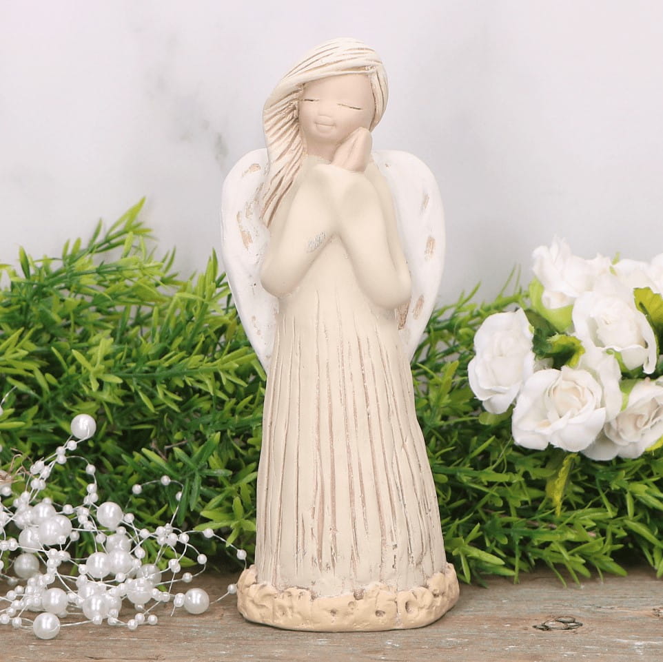 Anioł aniołek gipsowy złożone ręce krem 17cm