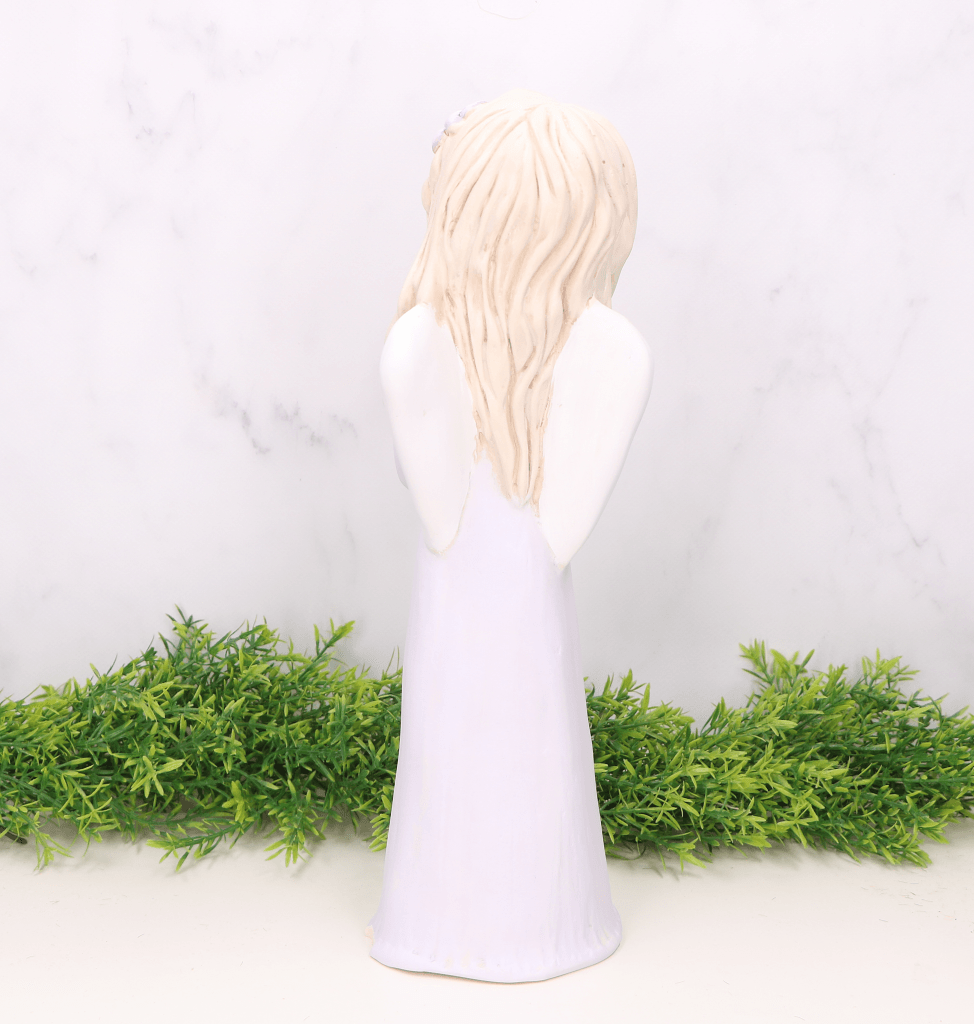 Anioł gipsowy w sukience fioletowy 34cm