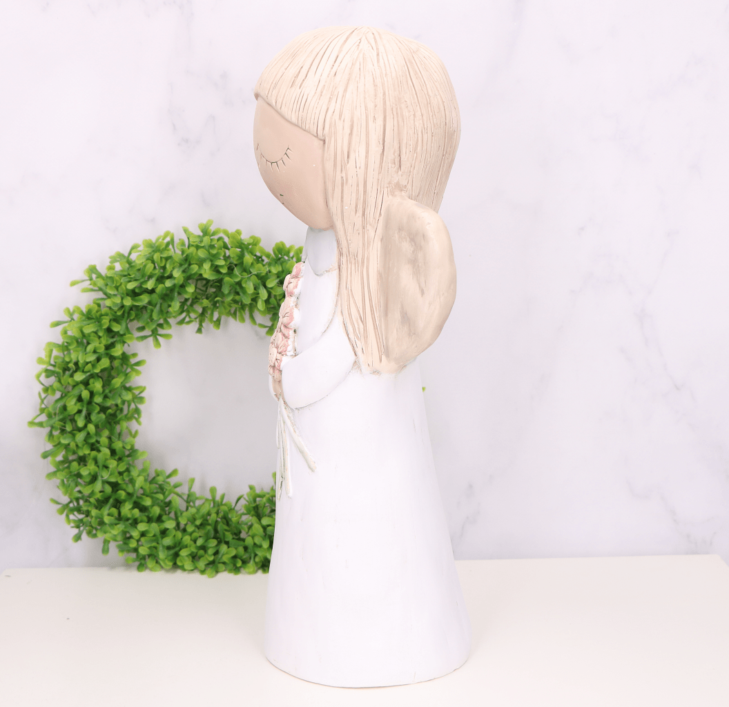 Anioł gipsowy z kwiatami biały 37cm