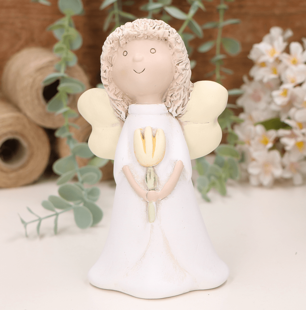 Aniołek dziewczynka z żółtym tulipanem 16cm