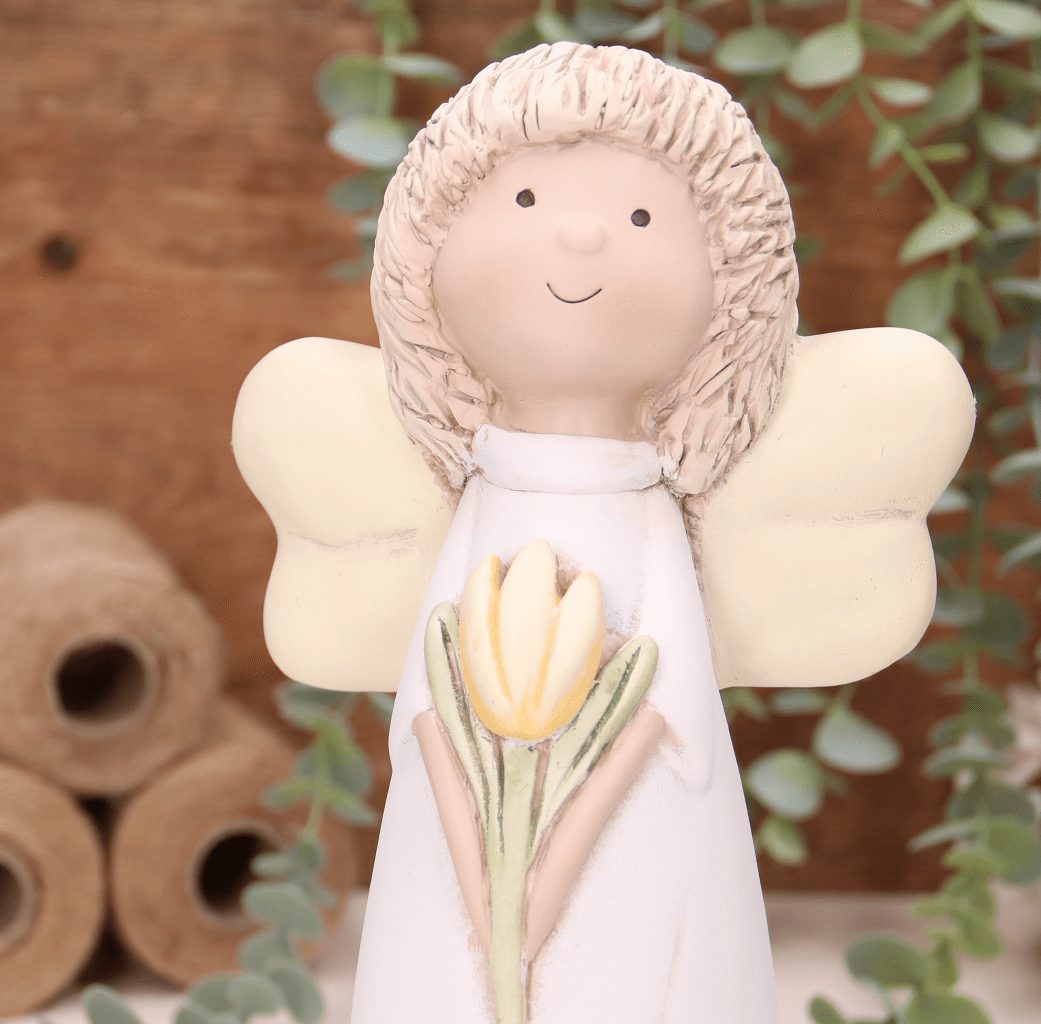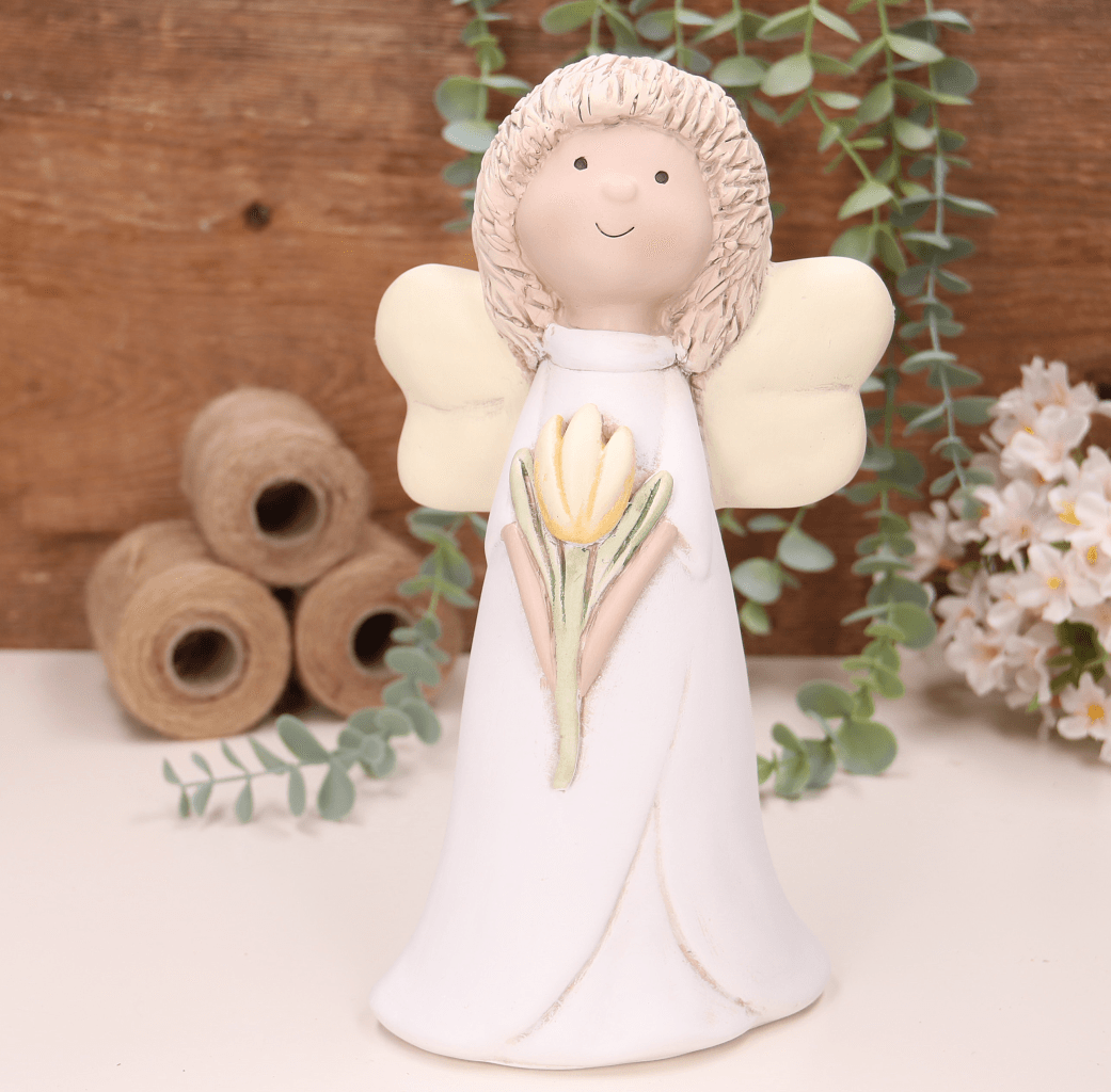 Aniołek dziewczynka z żółtym tulipanem 25cm
