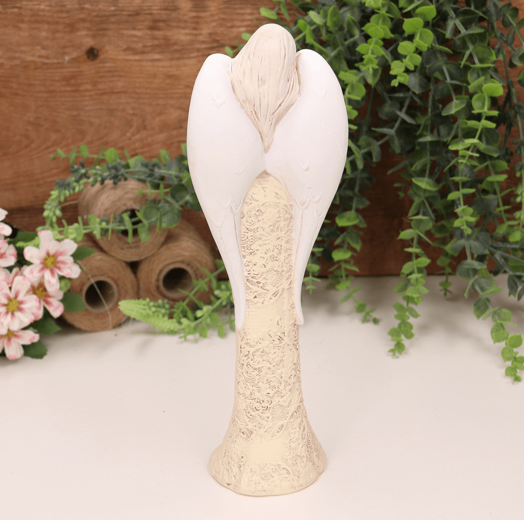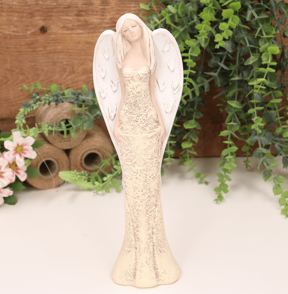 Aniołek ślubny w zdobionej sukni kremowy 26cm
