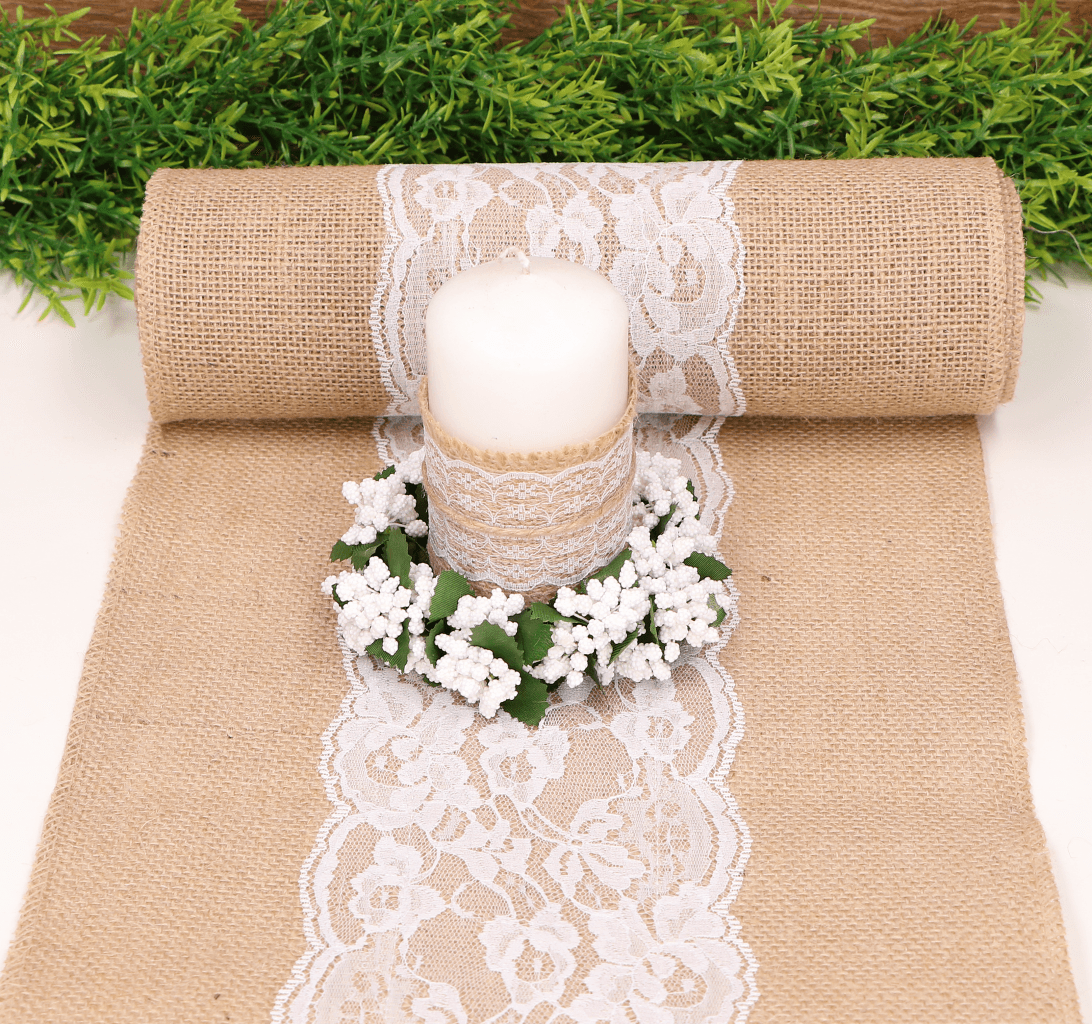 Bieżnik wykonany z materiału jutowego i koronki. Jasne i delikatne kolory w połączeniu z koronką przypadną do gustu Twoim bliskim i przygotują scenę do przygotowania całej aranżacji na weselny czy komunijny stół. Bieżnik to piękna dekoracja stołu, która wprowadzi niepowtarzalny klimat. Bieżnik można przyciąć na określoną długość.