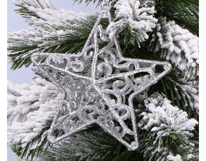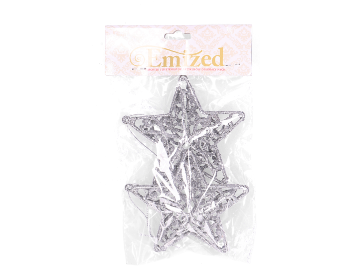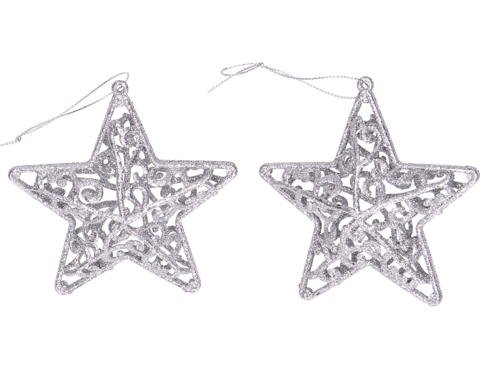 Zawieszki brokatowe na choinkę plastikowe gwiazdy srebrne 2 szt.