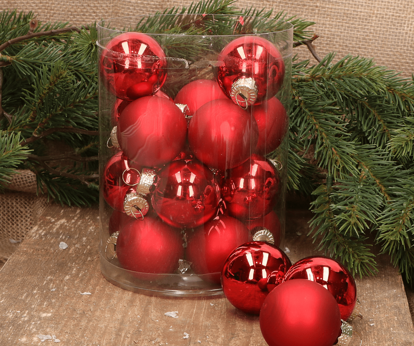 Bombki szklane czerwone 4cm- 20 sztuk w opakowaniu