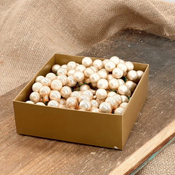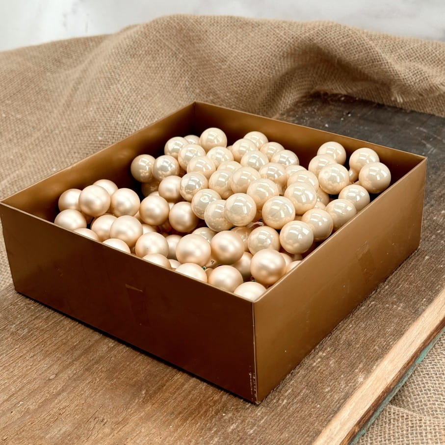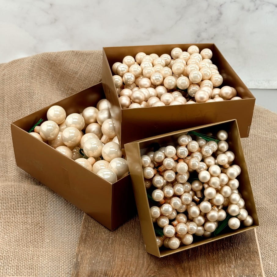 Bombki szklane na druciku szampańskie 2cm- 144 sztuki w złotym pudełku