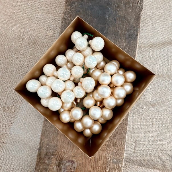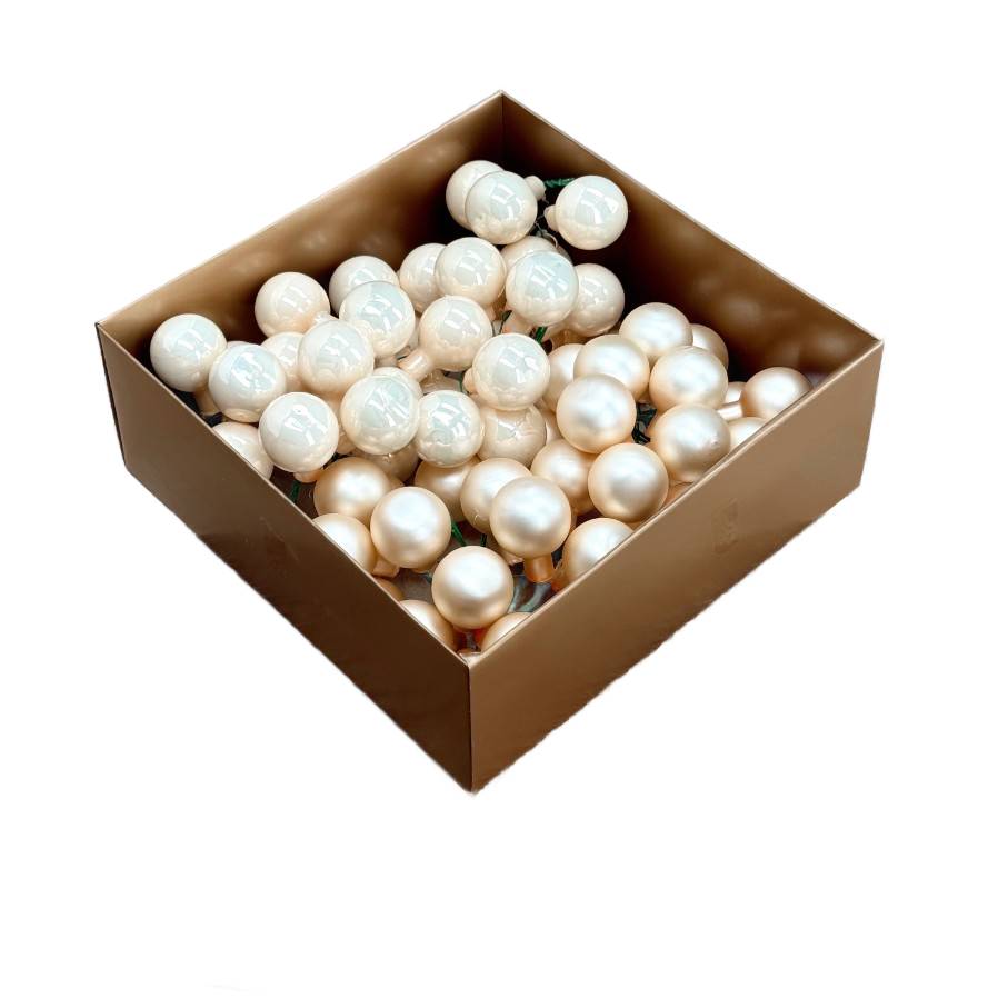 Bombki szklane na druciku szampańskie 3cm- 72 sztuki w złotym pudełku