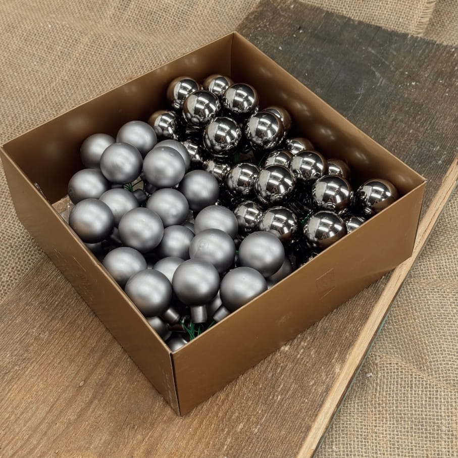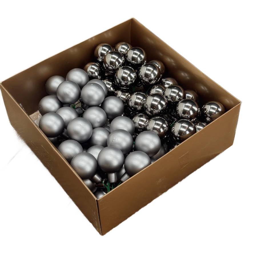 Bombki szklane na druciku szare 3cm- 72 sztuki w złotym pudełku