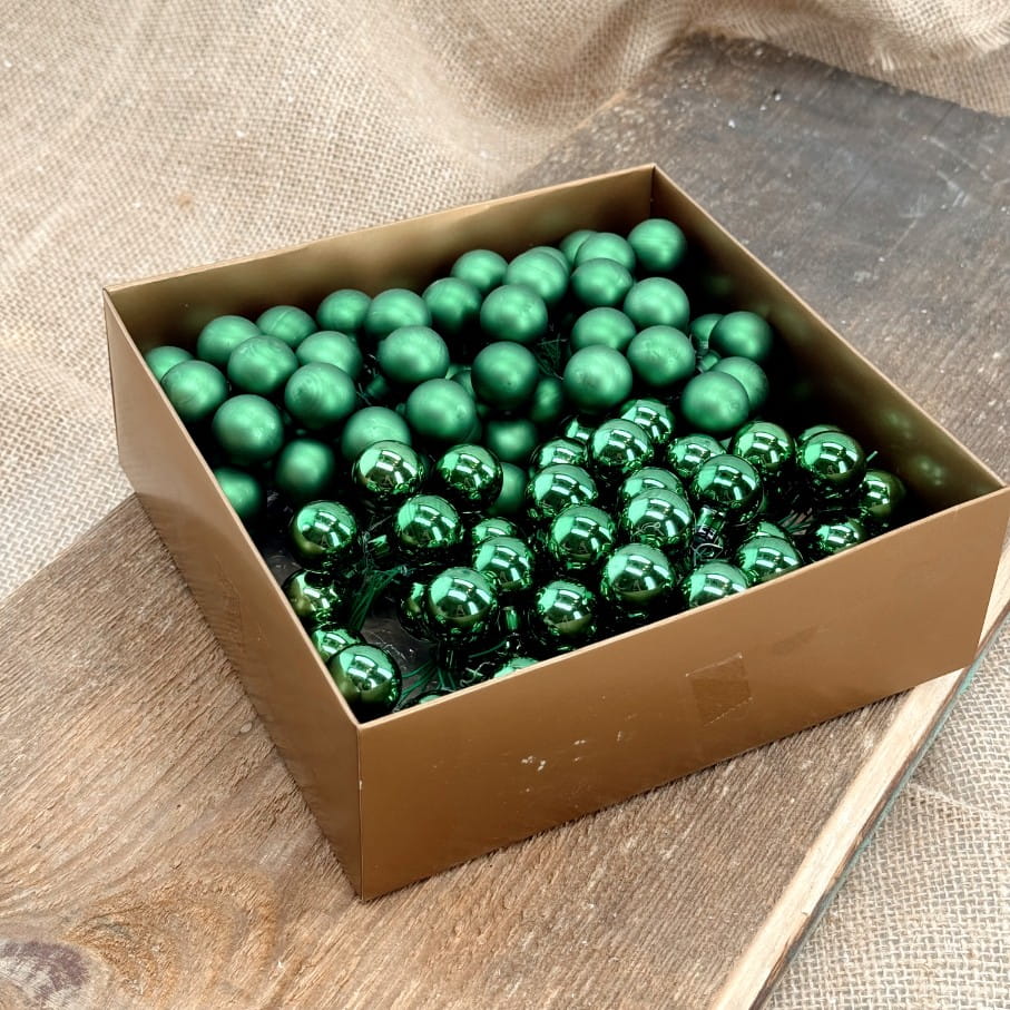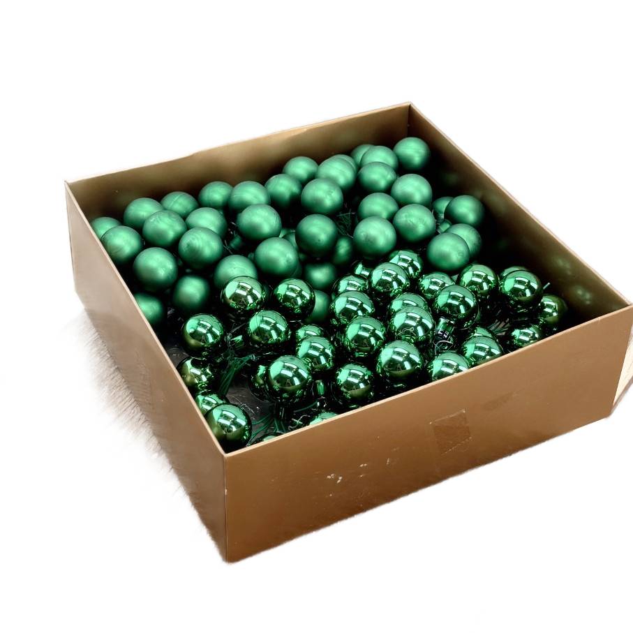 Bombki szklane na druciku zielone 2cm- 144 sztuki w złotym pudełku