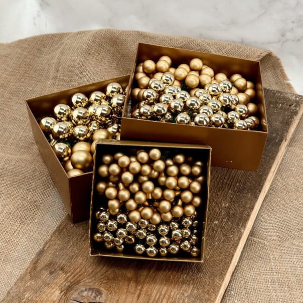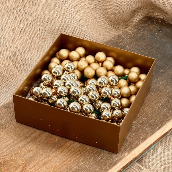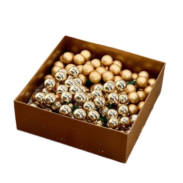 Bombki szklane na druciku złote 2cm- 144 sztuki w złotym pudełku