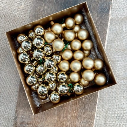 Bombki szklane na druciku złote 3cm- 72 sztuki w złotym pudełku