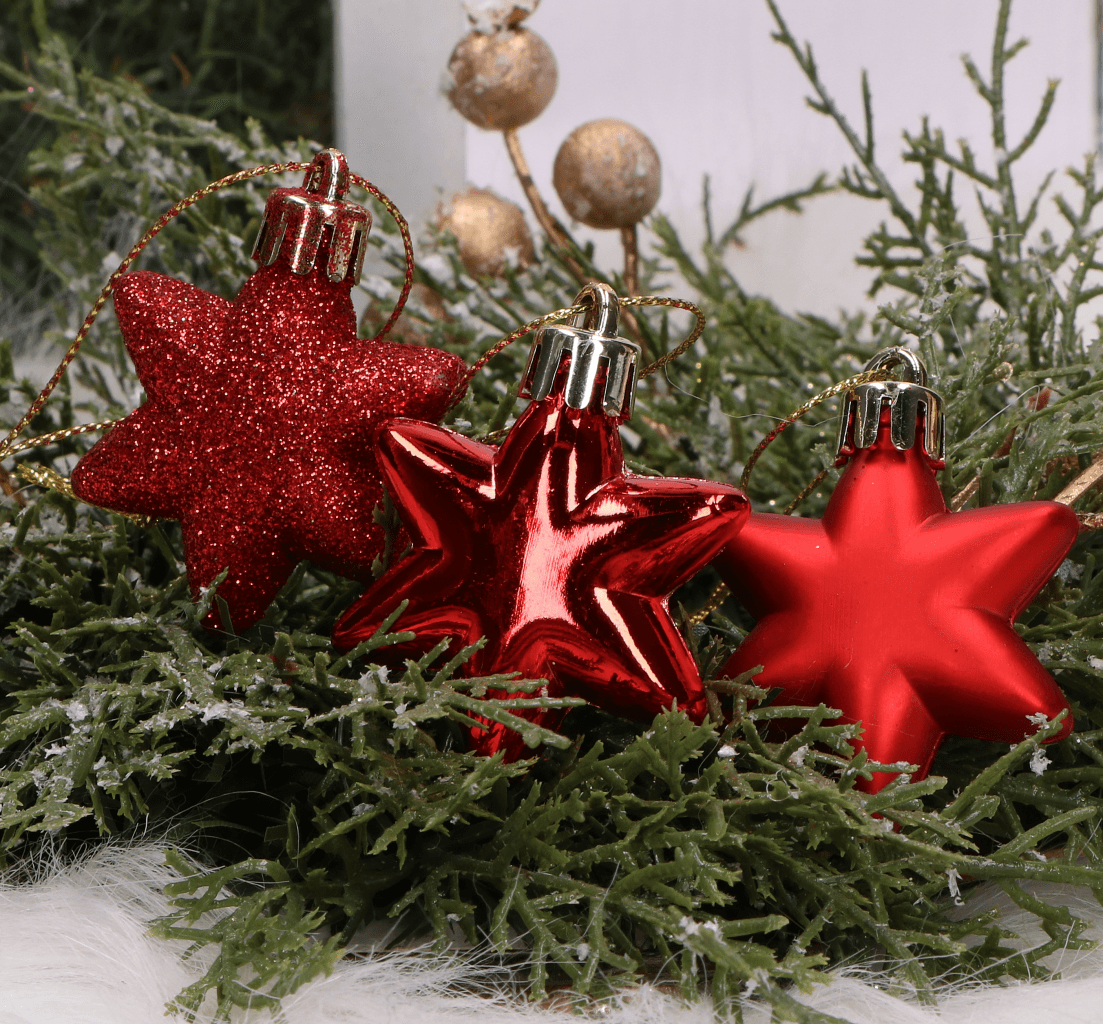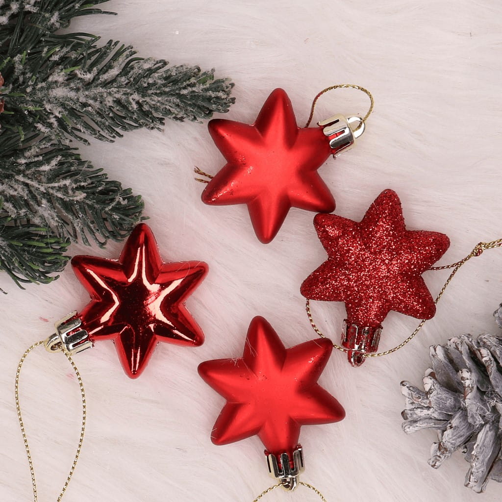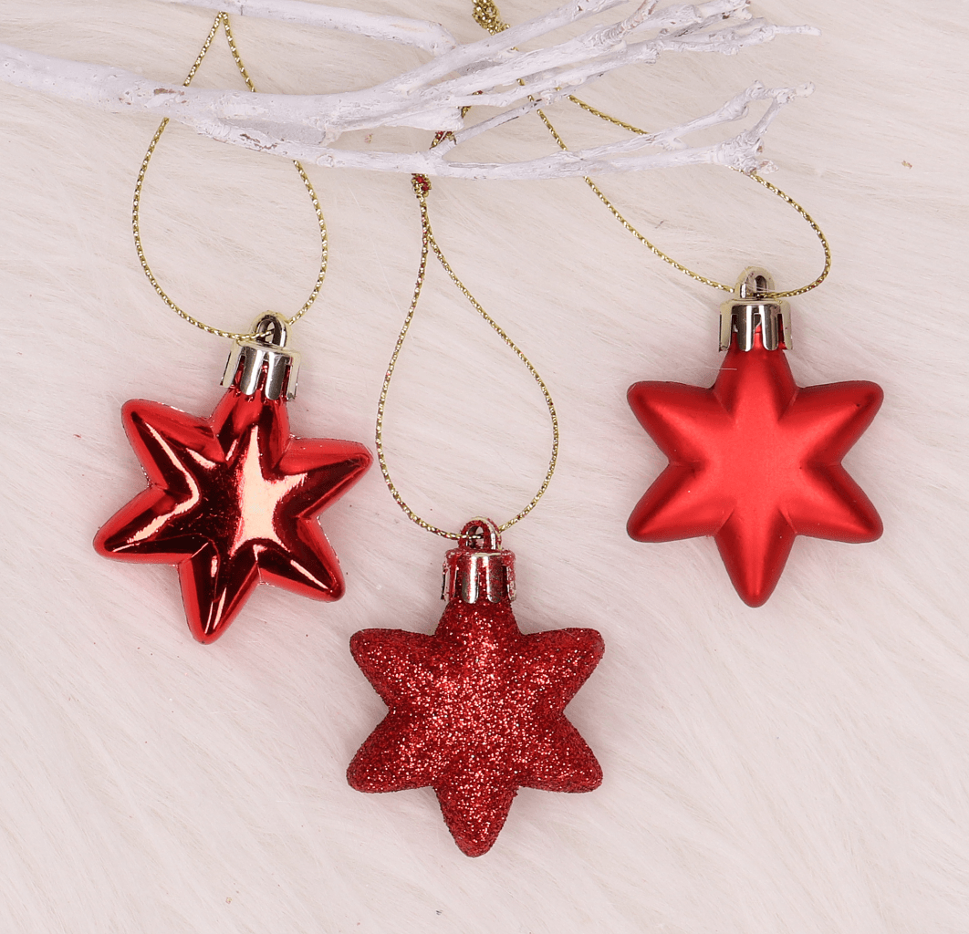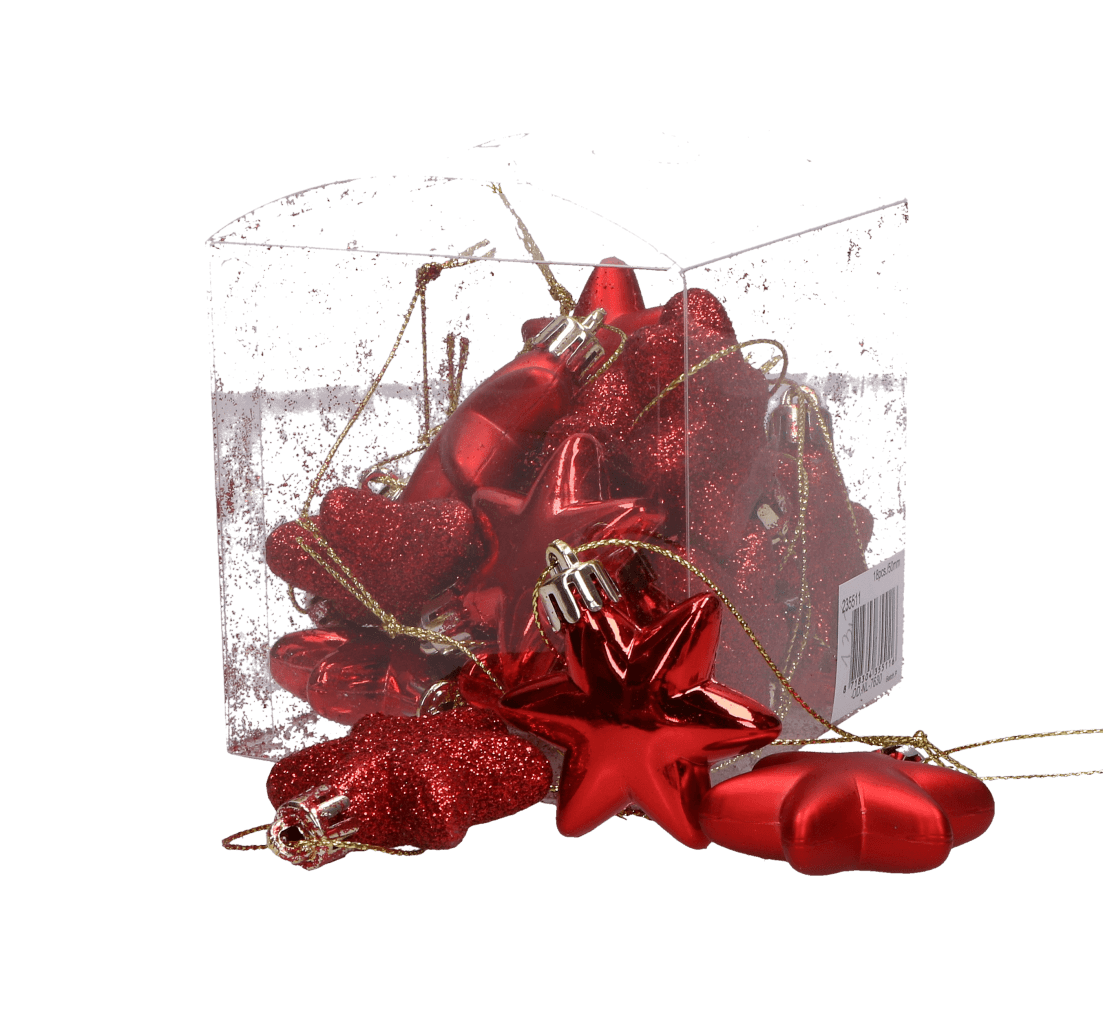 Bombki zestaw 18szt. gwiazdki czerwone