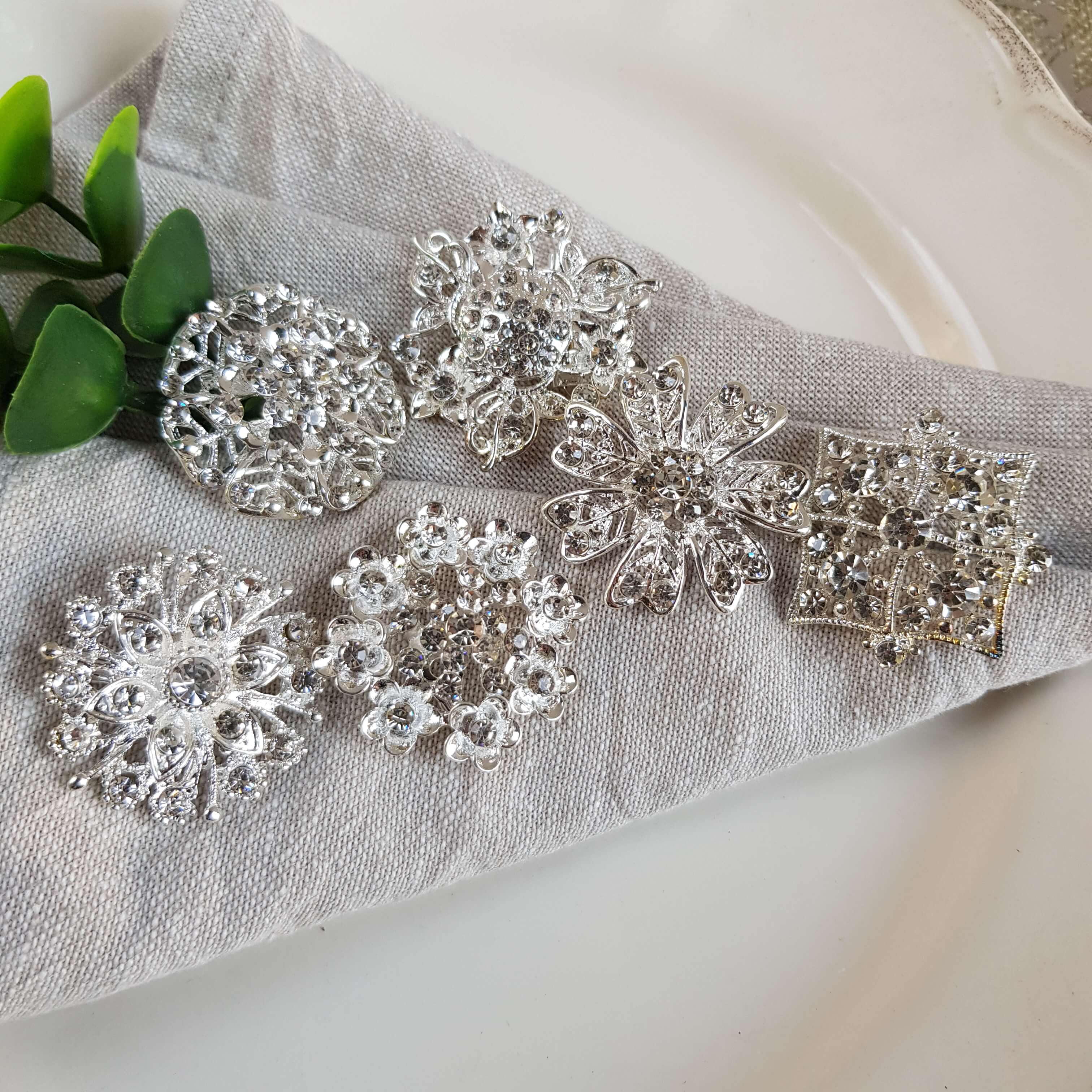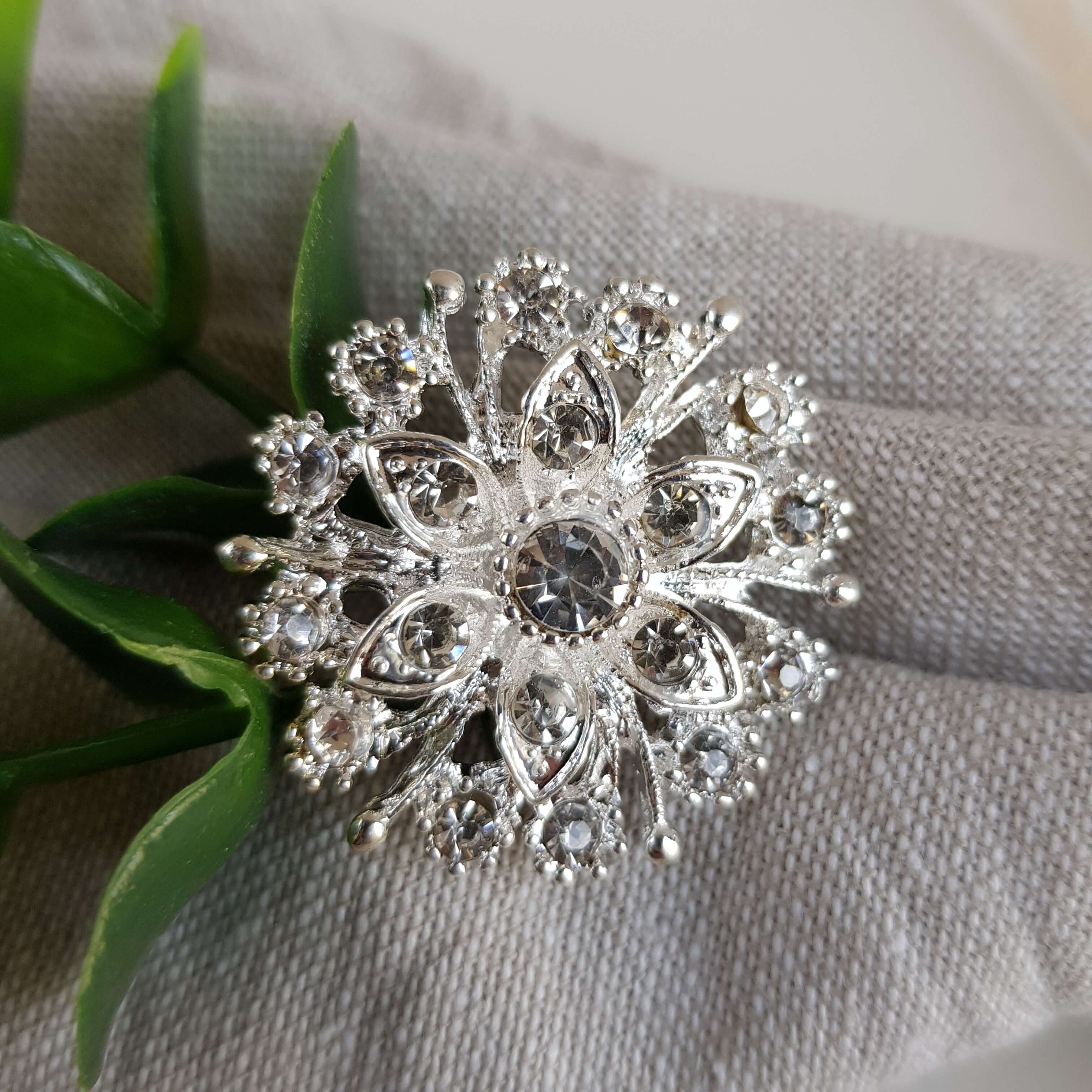 Piękne broszki w kształcie liścia wykonane zostały z wielką starannością. Świetnie nadają się do aranżacji stołu w stylu glamour oraz jako przypinka np. do torebki.