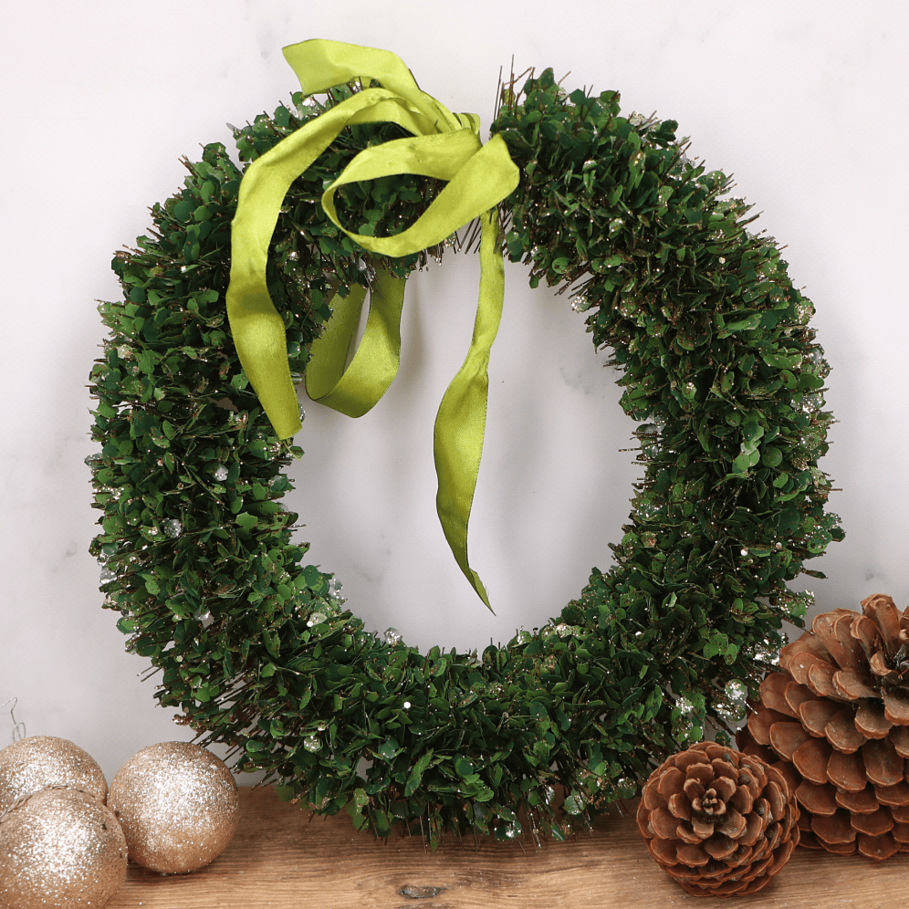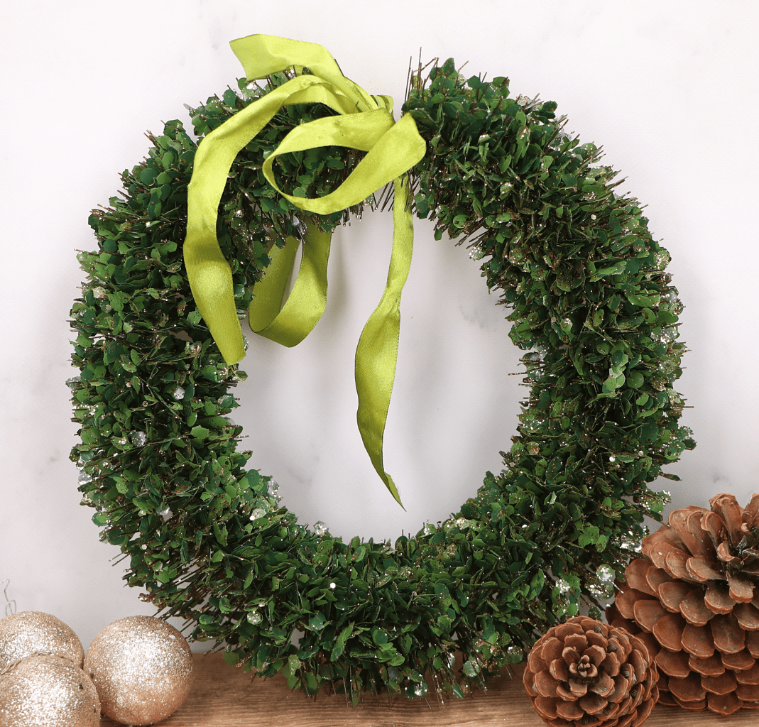 Dekoracyjny wianek zielony z kokardką 30 cm
