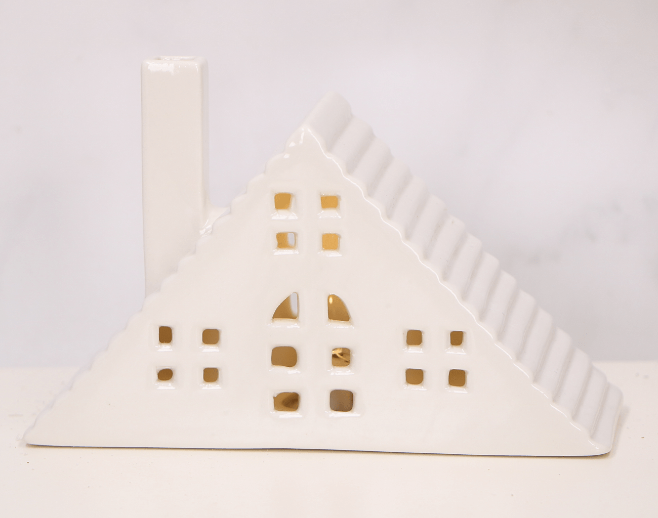 Domek ceramiczny, biały, ze światełkiem LED 8x15cm