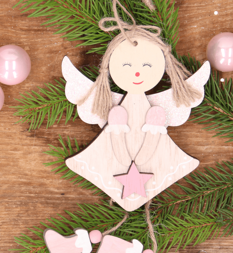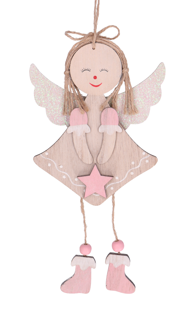 Drewniana zawieszka na choinkę aniołek różowy 21cm
