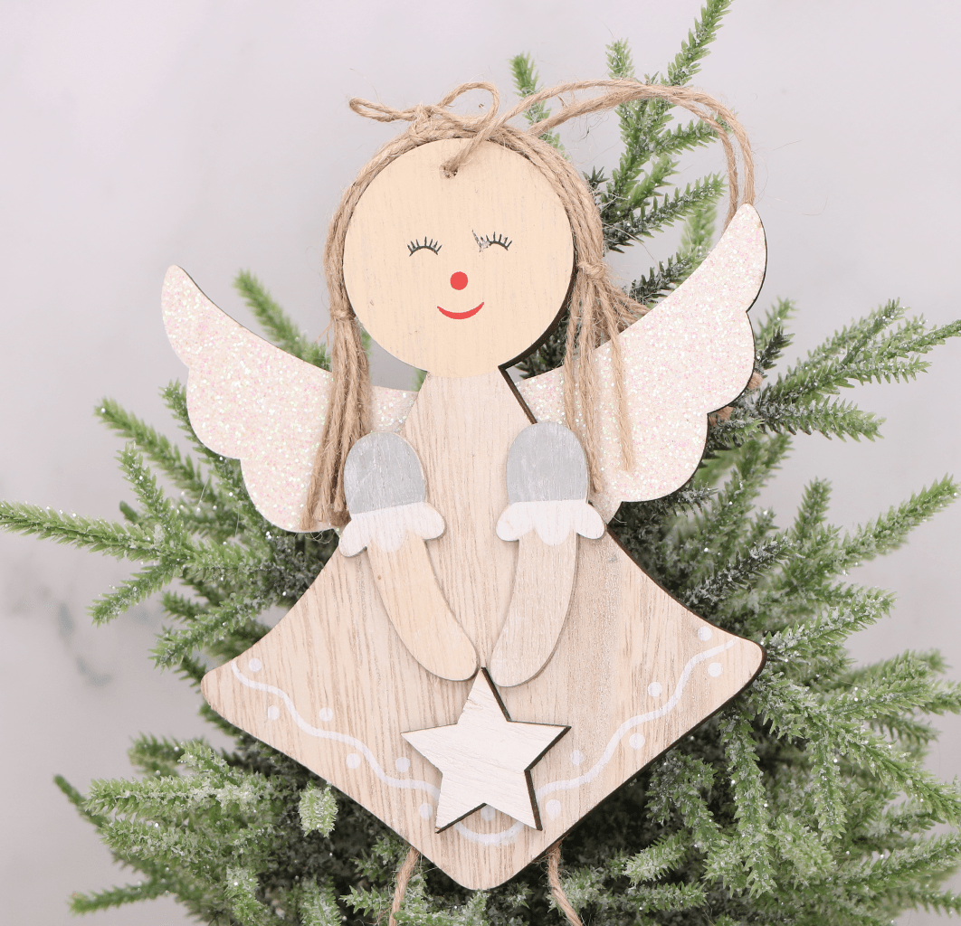 - Skrzydła aniołka obsypane są mieniącym brokatem, który dodaje jeszcze więcej magii świątecznej