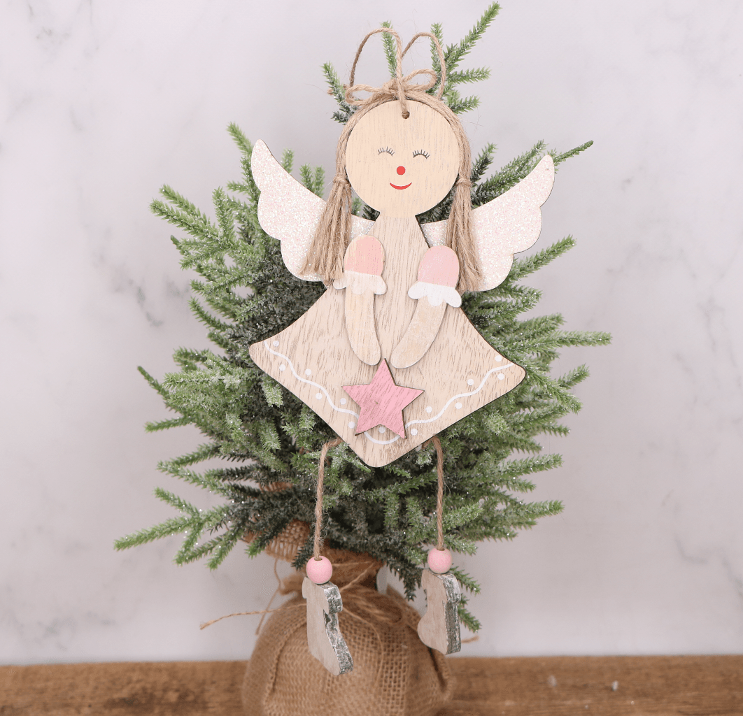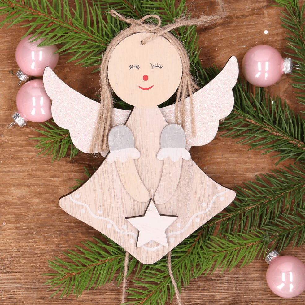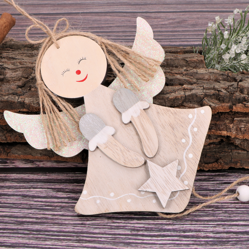 Drewniana zawieszka na choinkę aniołek szary 28 cm