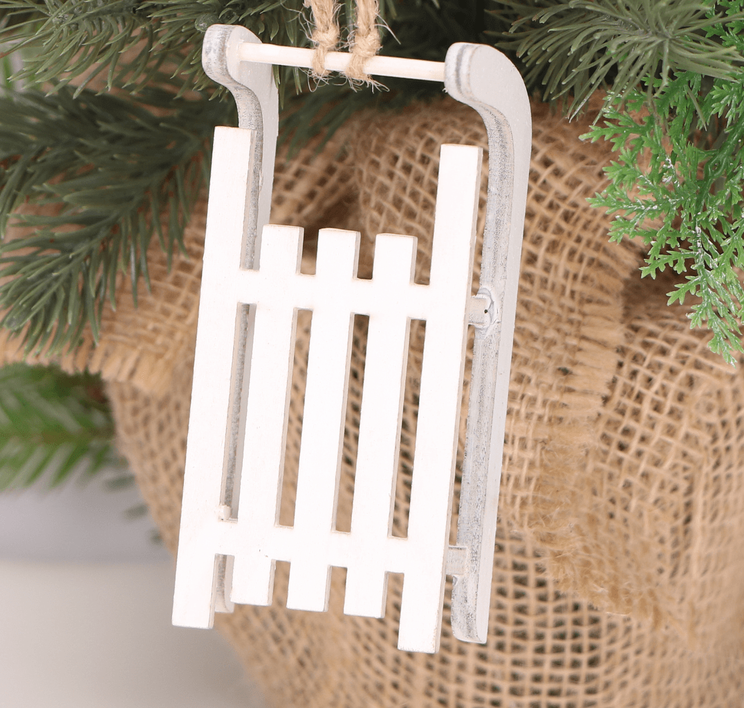 Drewniane białe sanki/ zawieszka na choinkę 1szt