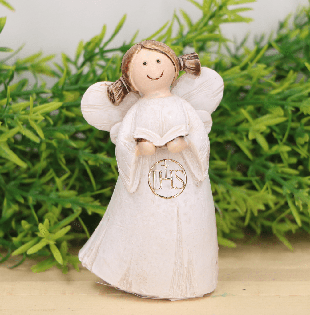 Aniołki polirezynowe to piękne figurki na każdą okazję. Dobrze wyeksponowana figurka stworzy ciepłą i czarującą atmosferę w Twoim domu, a w szczególności w pokoju dziecka które otrzyma taką pamiątkę z okazji I Komunii Świętej.