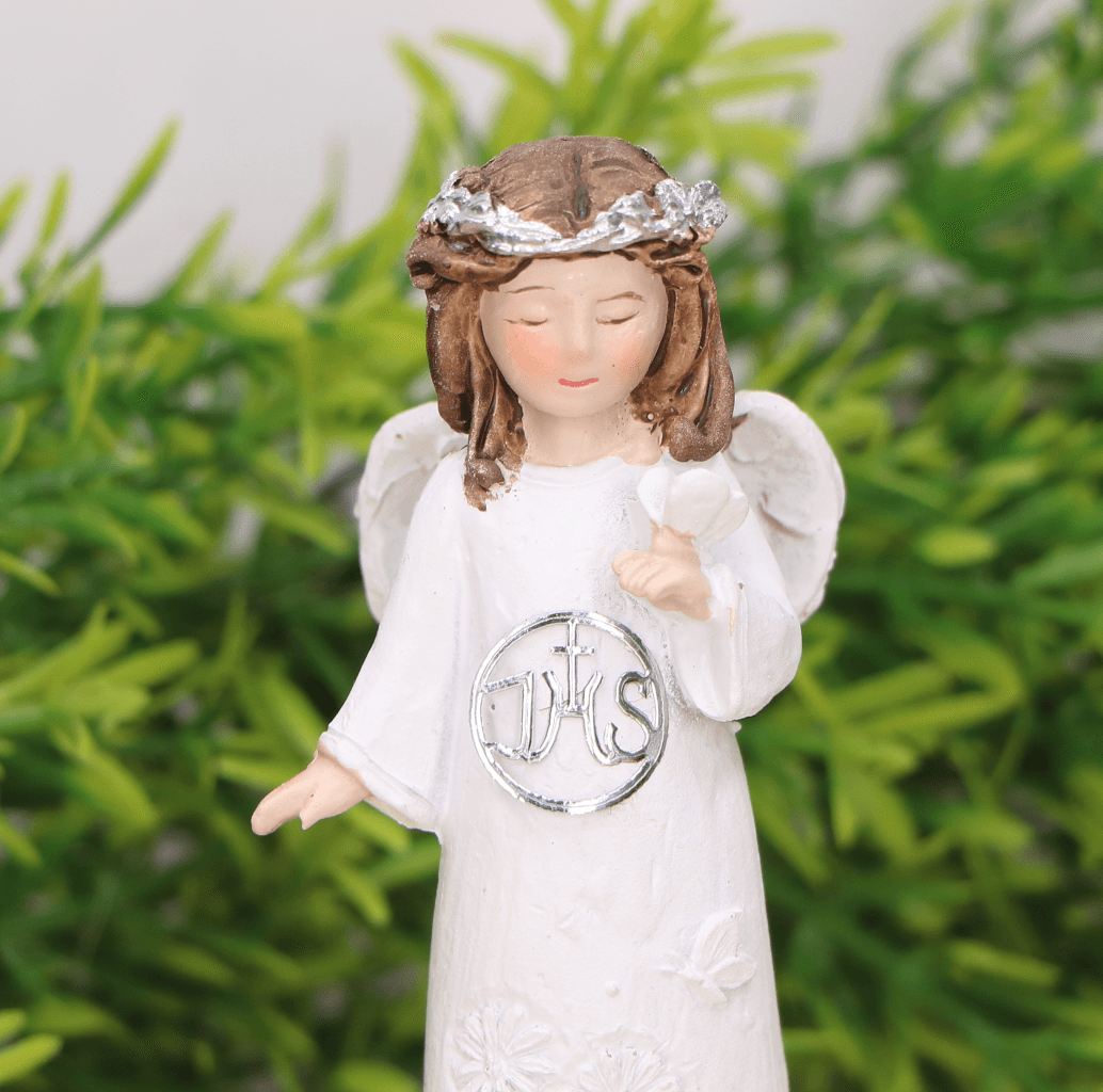 Aniołki polirezynowe to piękne figurki na każdą okazję. Dobrze wyeksponowana figurka stworzy ciepłą i czarującą atmosferę w Twoim domu, a w szczególności w pokoju dziecka które otrzyma taką pamiątkę z okazji I Komunii Świętej.