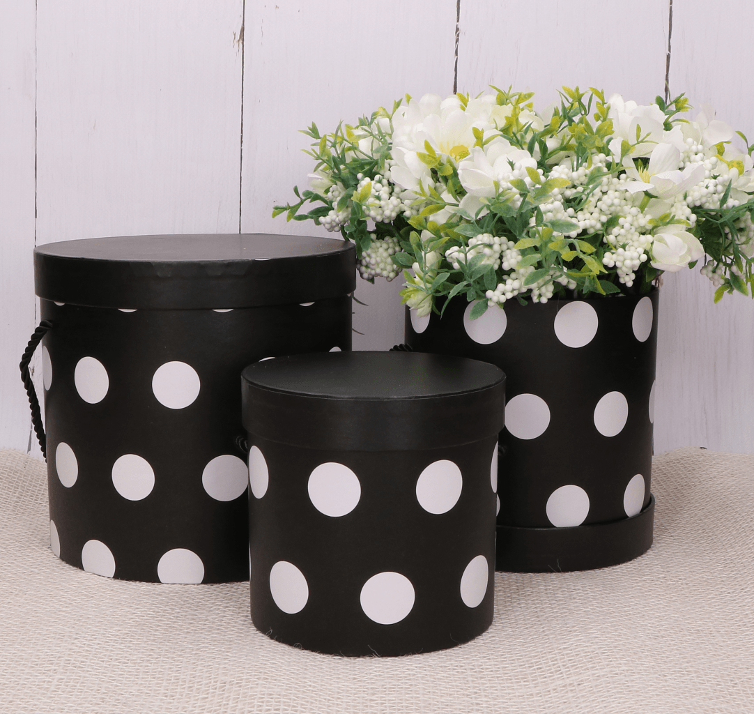 Flowerbox Pudełko na kwiaty w kropki czarny 3szt