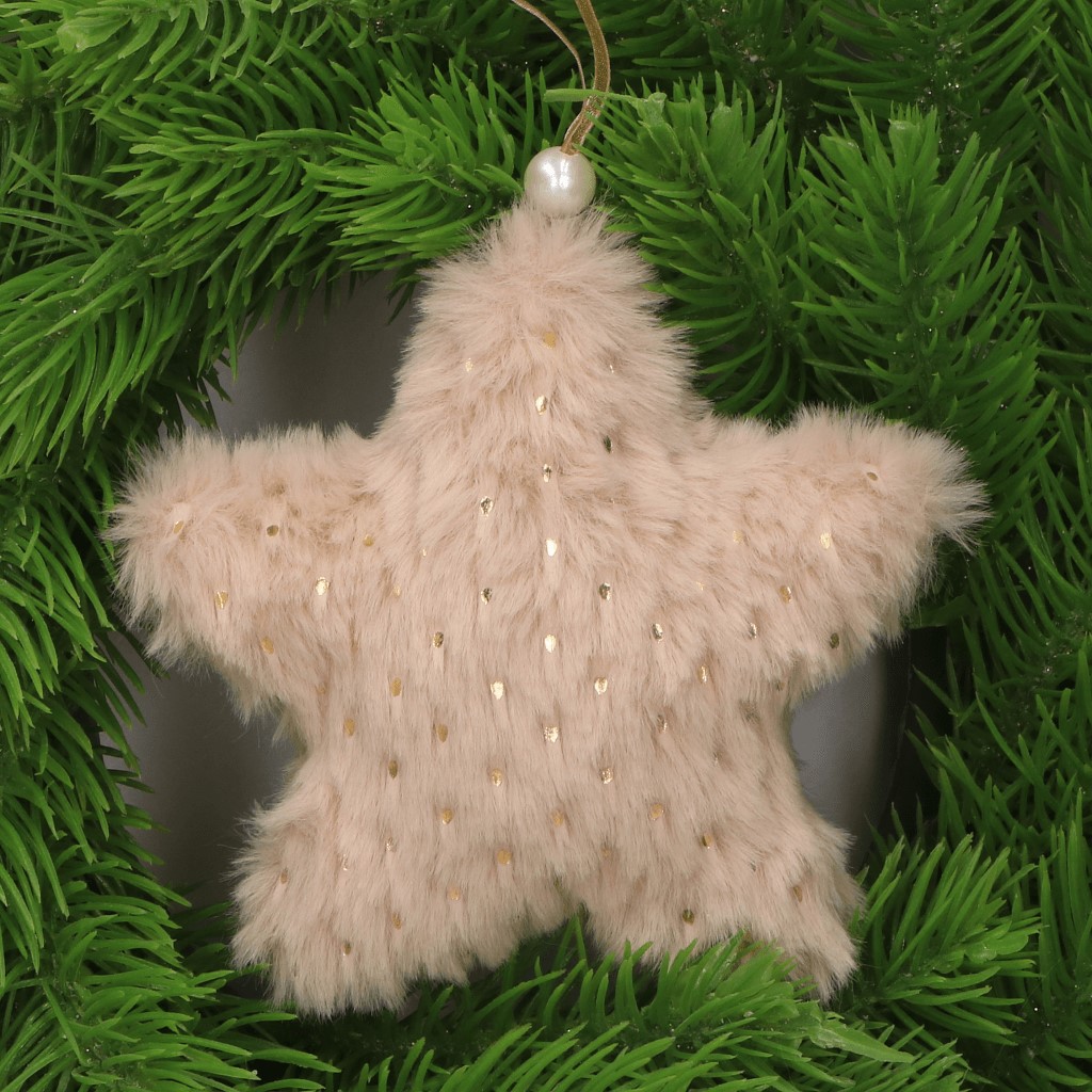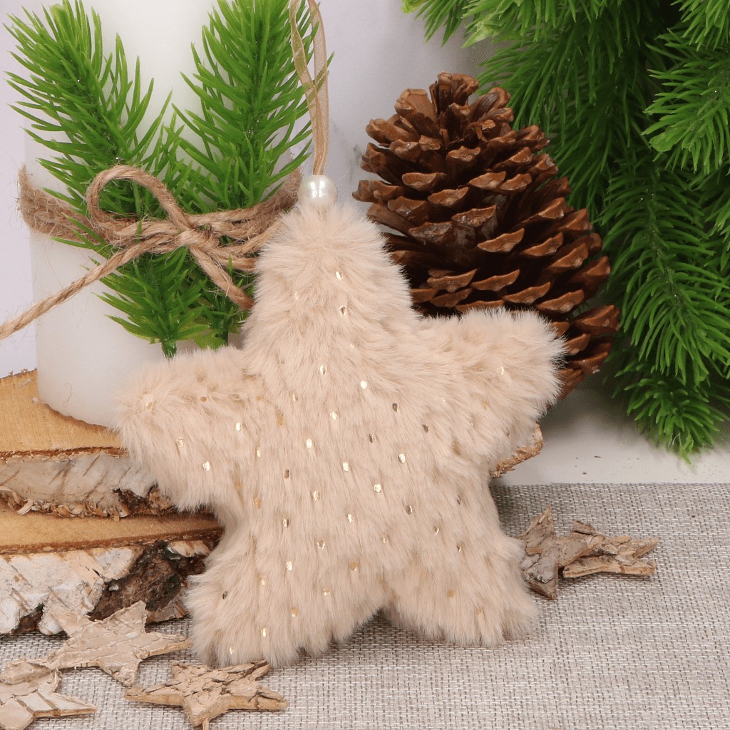 Futerkowa zawieszka bombka na choinkę GWIAZDKA beż
