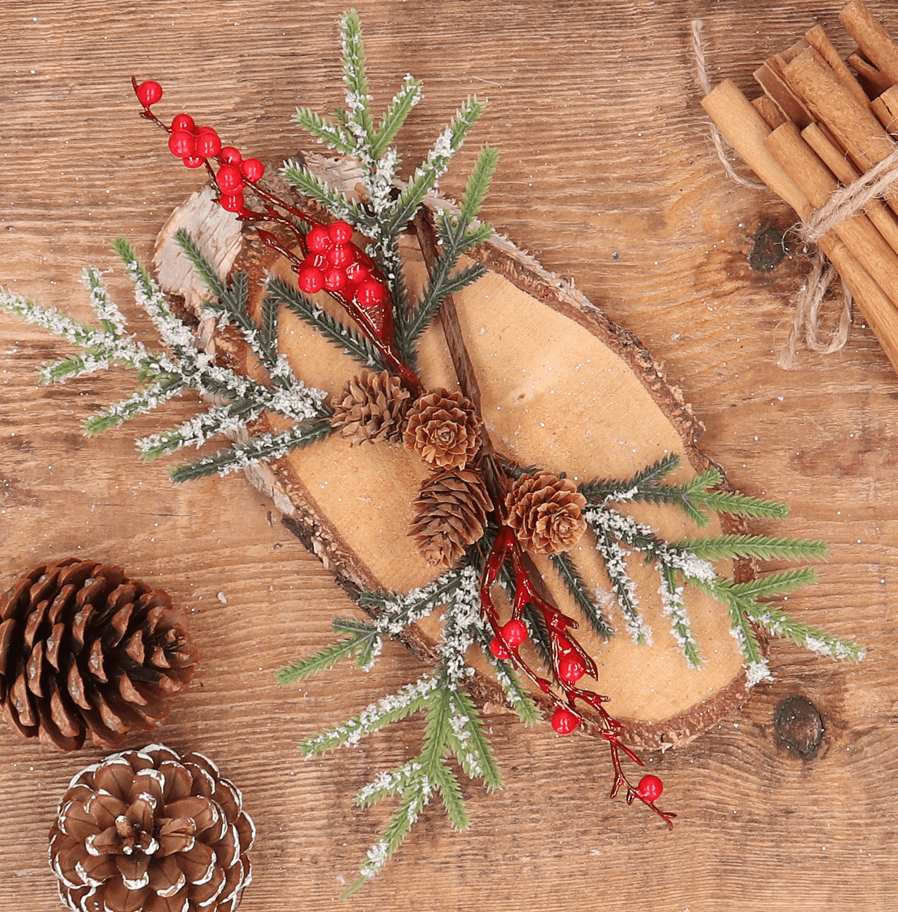 Gałązki dekoracyjne z szyszkami i jarzębiną 12 szt. 22 cm