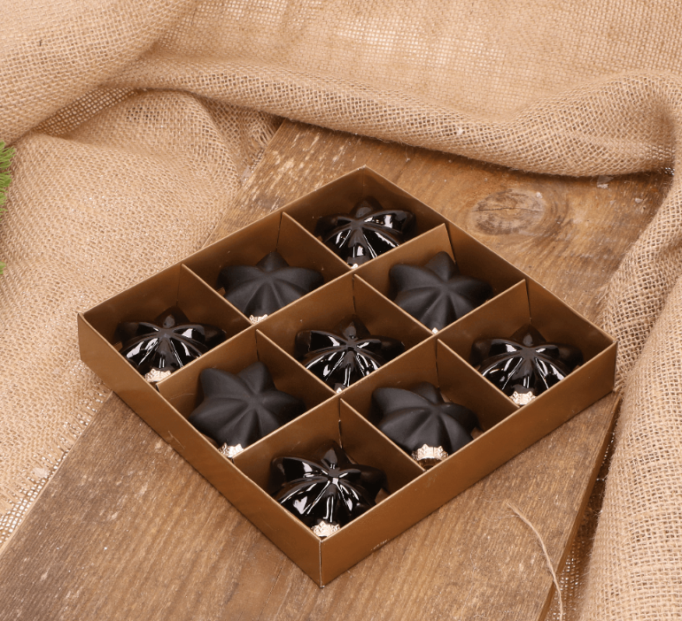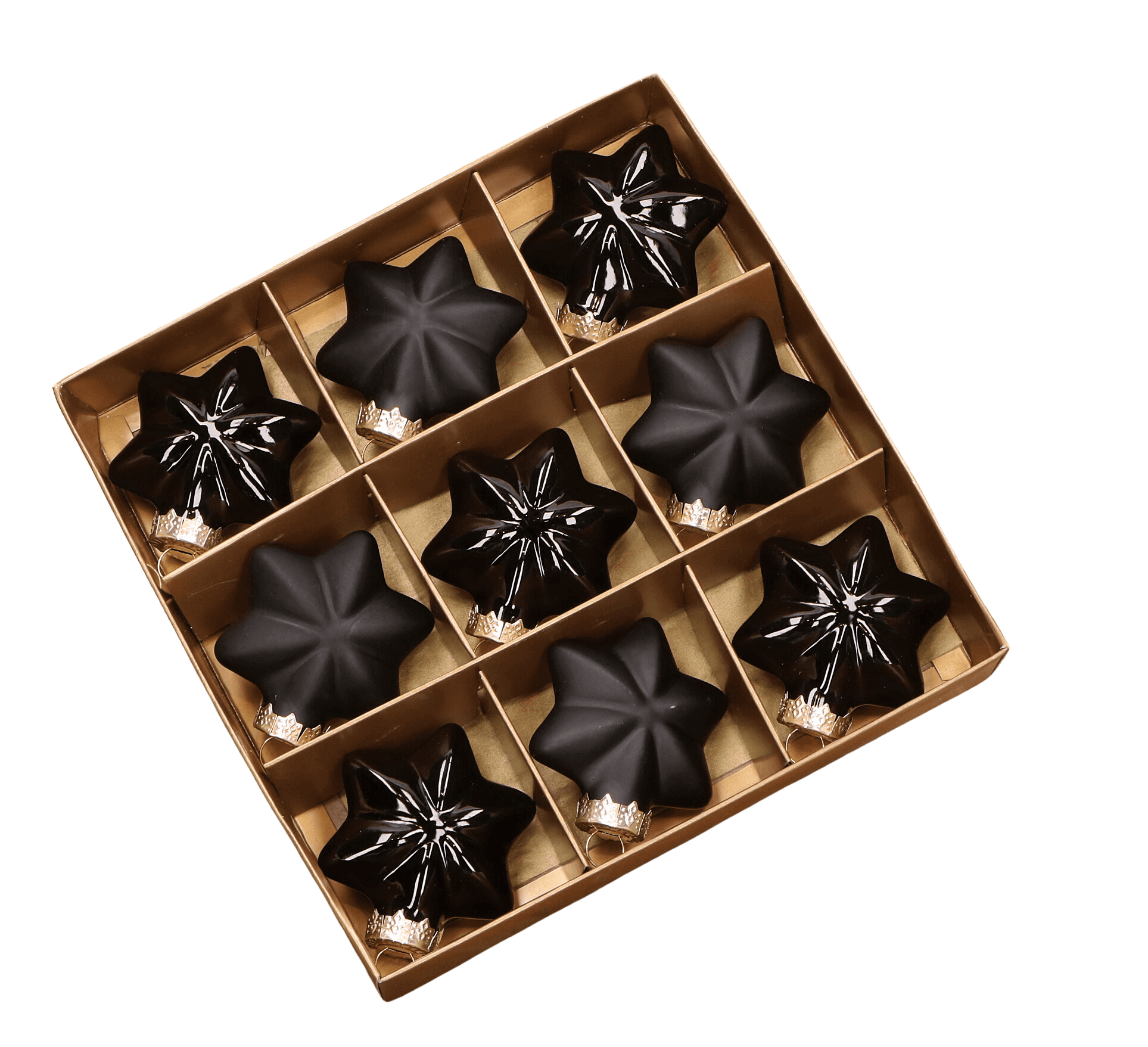 Gwiazdka szklana czarna 6,5cm- 9 sztuk w złotym opakowaniu