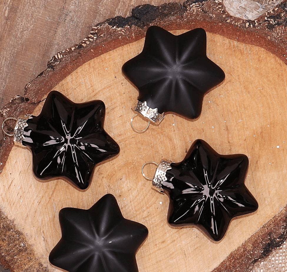 Ten elegancki zestaw składa się z dziewięciu czarnych, szklanych gwiazdek, które doskonale sprawdzą się jako ozdoba na Twoją choinkę lub świąteczny stroik. Starannie wykonane, połyskujące i matowe gwiazdki wprowadzą nowoczesny akcent do każdego wnętrza, a ich głęboka, czarna barwa doda stylu i szyku. Opakowane w eleganckie złote pudełko, które idealnie nadaje się także na prezent, są doskonałym dodatkiem do świątecznej dekoracji. Wysoka jakość wykonania zapewnia trwałość na lata.