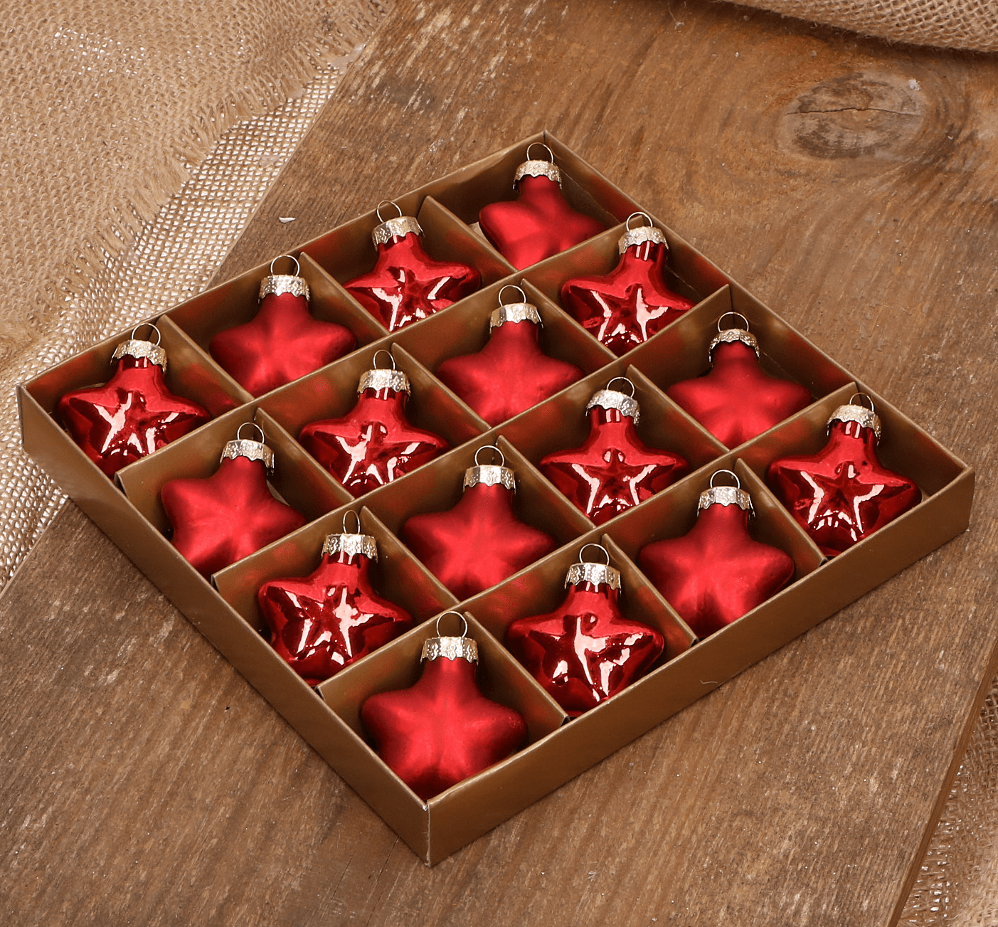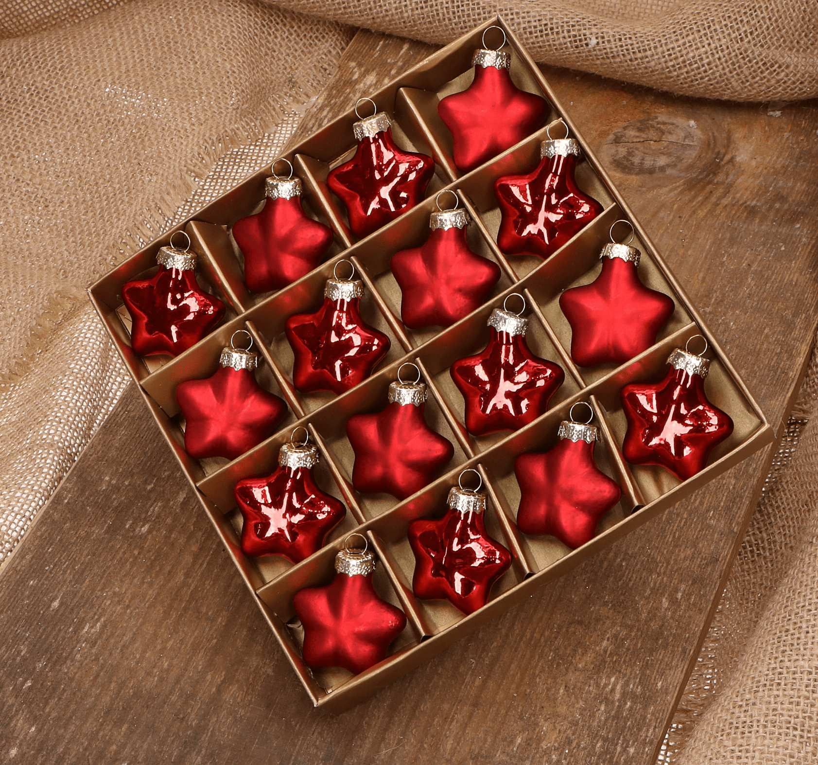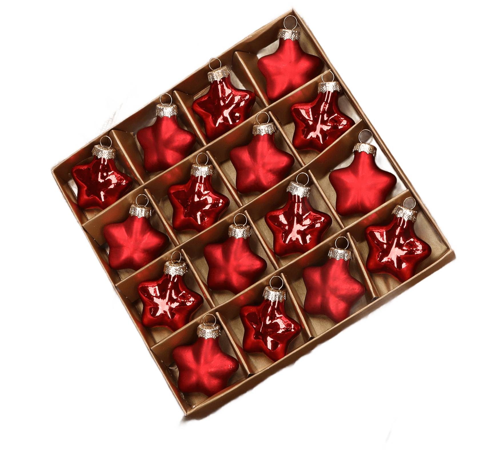 Gwiazdka szklana czerwona 4cm- 16 sztuk w złotym opakowaniu