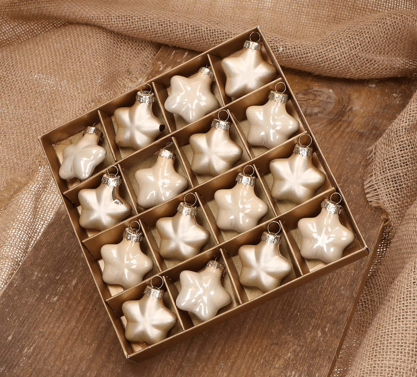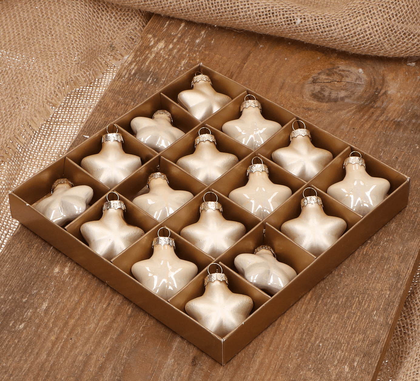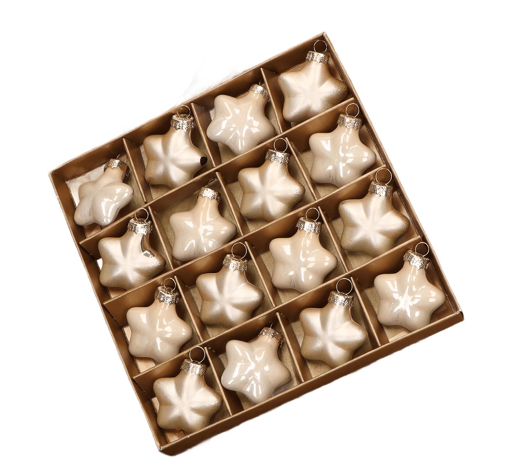 Gwiazdka szklana szampańska 4cm- 16 sztuk w złotym opakowaniu