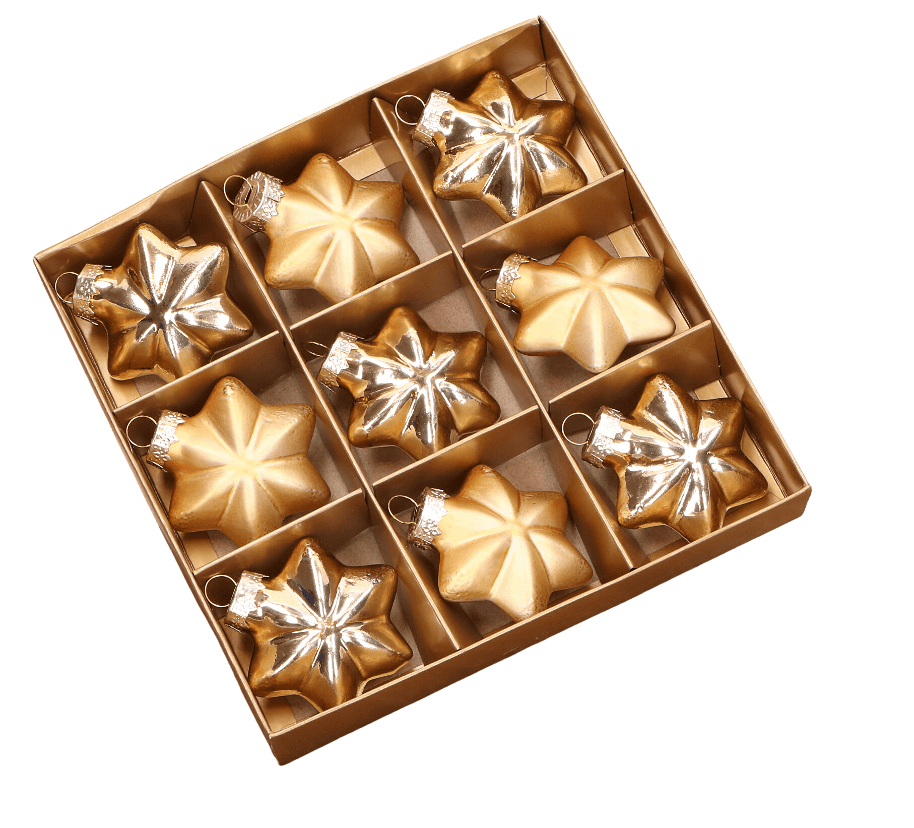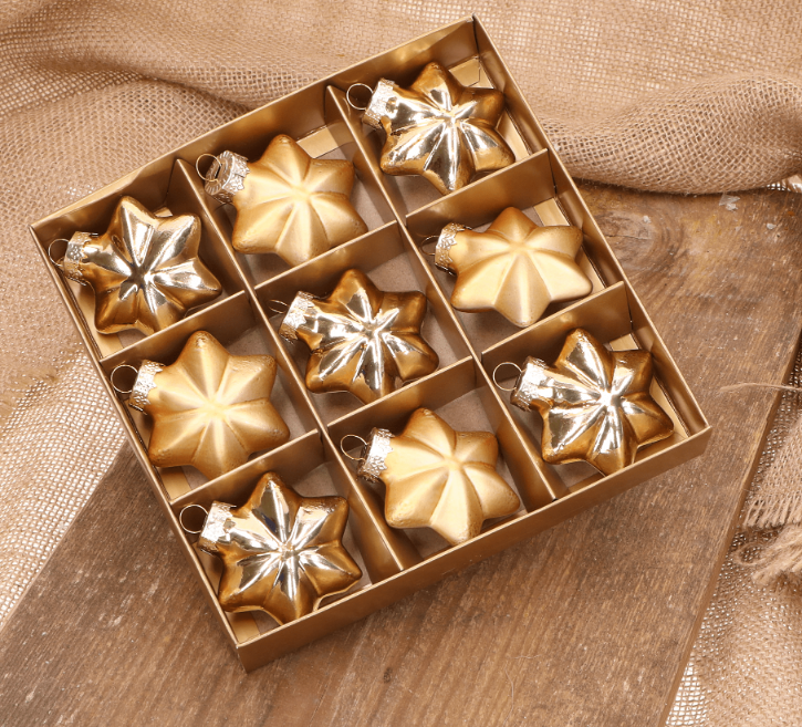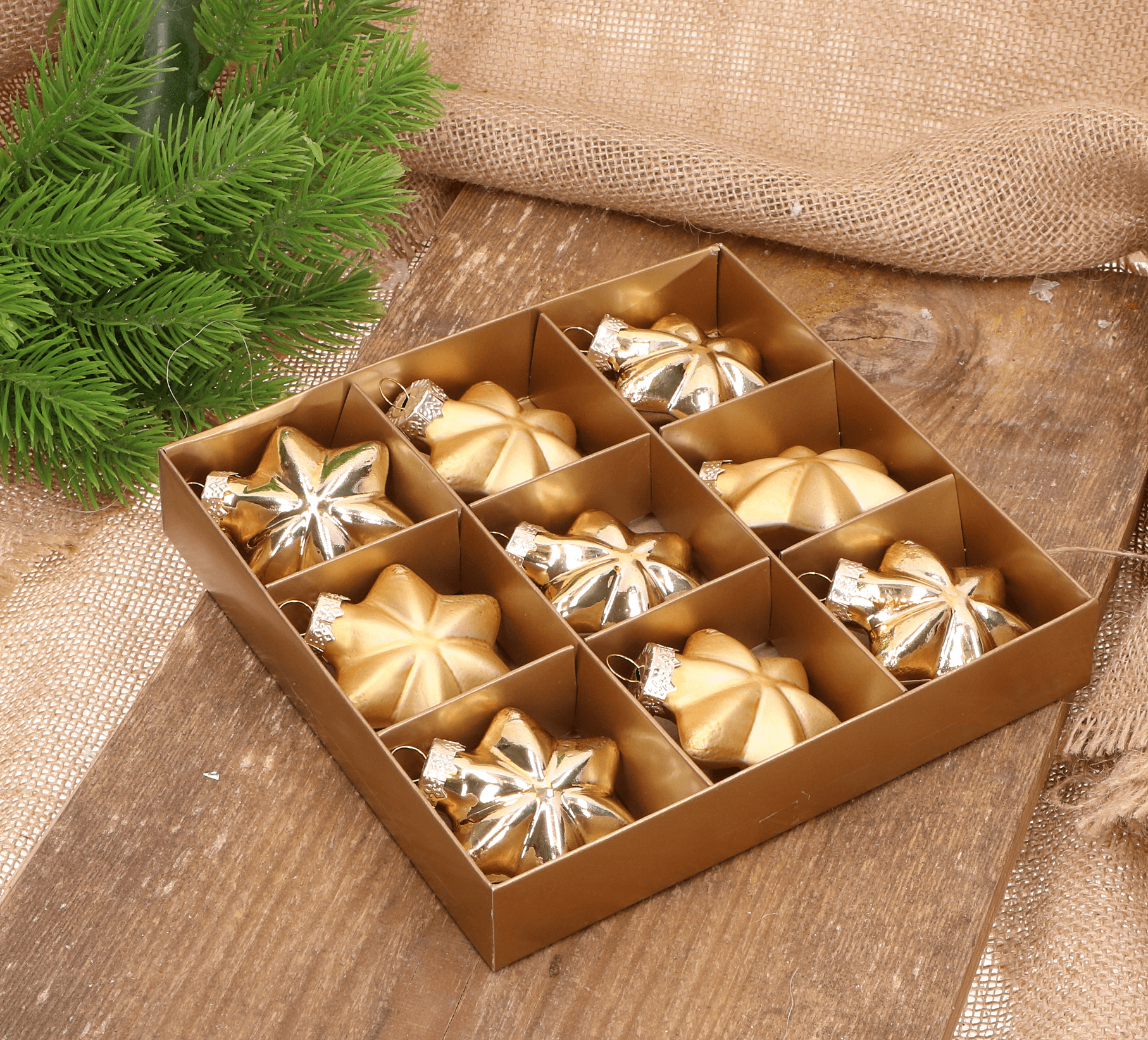 Gwiazdka szklana złota 6,5cm- 9 sztuk w złotym opakowaniu