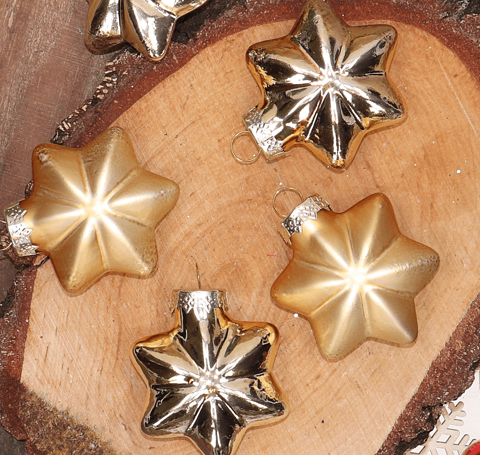 Zestaw szklanych, złotych gwiazdek to doskonały sposób na dodanie blasku i elegancji Twoim świątecznym dekoracjom. Połączenie połyskujących i matowych wykończeń nadaje im wyjątkowego charakteru, który przyciąga wzrok. Idealne do zawieszenia na choince lub wykorzystania w stroikach, te starannie wykonane ozdoby będą wspaniałą ozdobą Twojego domu przez wiele lat. Zapakowane w eleganckie złote pudełko, są również świetnym pomysłem na prezent. Złote gwiazdki idealnie wpisują się w tradycyjne świąteczne motywy, dodając odrobinę luksusu każdej aranżacji.