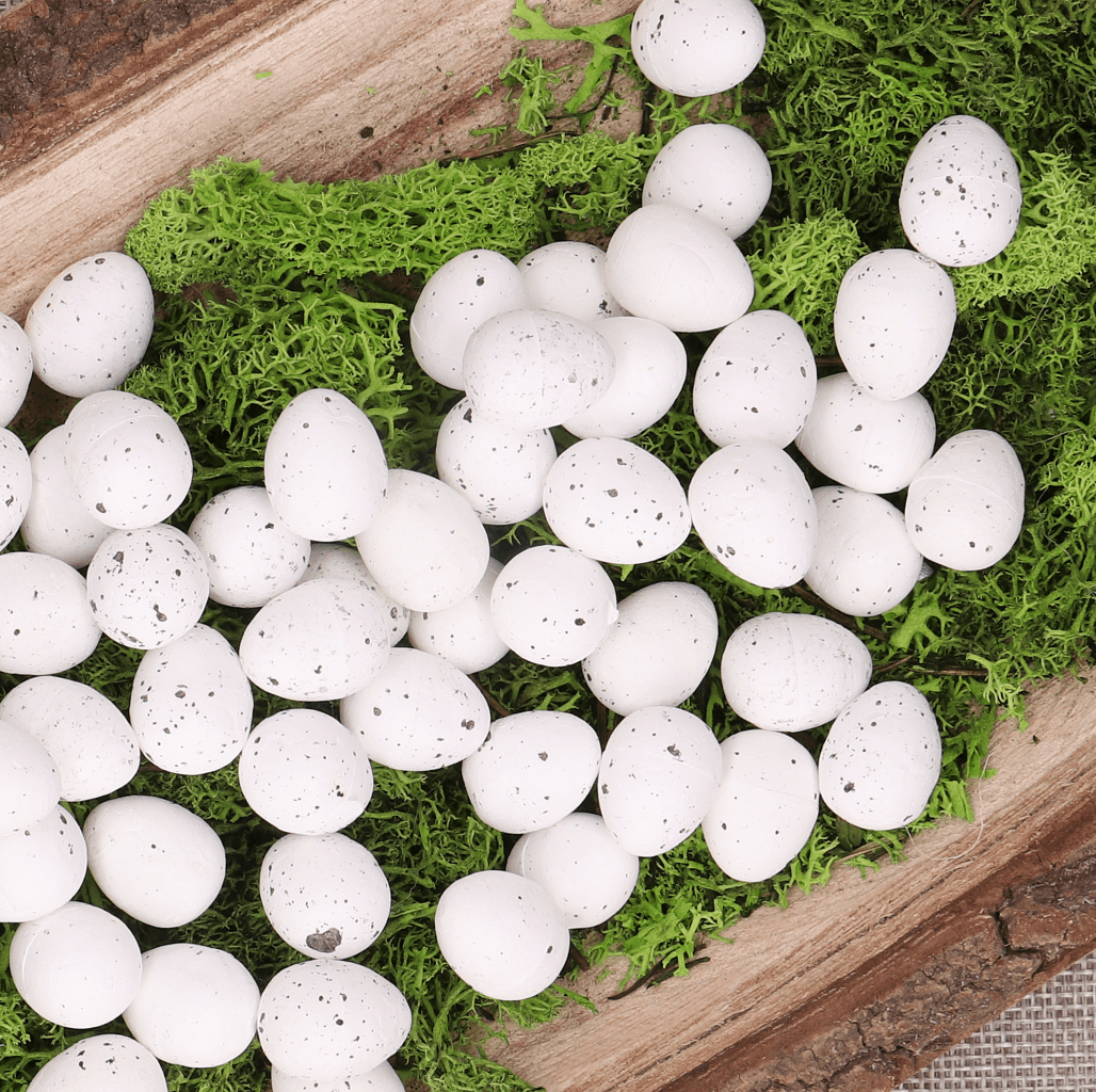 Wiosna i Wielkanoc zbliżają się wielkimi krokami. Aby wnieść do wnętrza świątecznego klimatu, możesz stworzyć różne kompozycje DIY z jajeczkami przepiórczymi. Jajeczka będą pięknie wyglądać wśród mchu, tulipanów i innych kwiatów. Nakrapiane jajeczka wyglądają pięknie w towarzystwie innych dekoracji Wielkanocnych i dodają wiele uroku do każdej kompozycji świątecznej. Jajeczka styropianowe bezpieczne są również dla dzieci, ponieważ nie potłuką się w razie upadku.