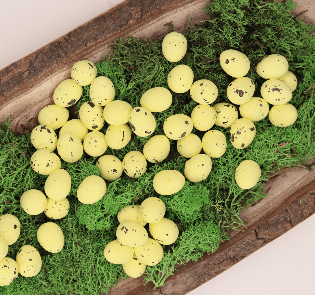Wiosna i Wielkanoc zbliżają się wielkimi krokami. Aby wnieść do wnętrza świątecznego klimatu, możesz stworzyć różne kompozycje DIY z jajeczkami przepiórczymi. Jajeczka będą pięknie wyglądać wśród mchu, tulipanów i innych kwiatów. Nakrapiane jajeczka wyglądają pięknie w towarzystwie innych dekoracji Wielkanocnych i dodają wiele uroku do każdej kompozycji świątecznej. Jajeczka styropianowe bezpieczne są również dla dzieci, ponieważ nie potłuką się w razie upadku.