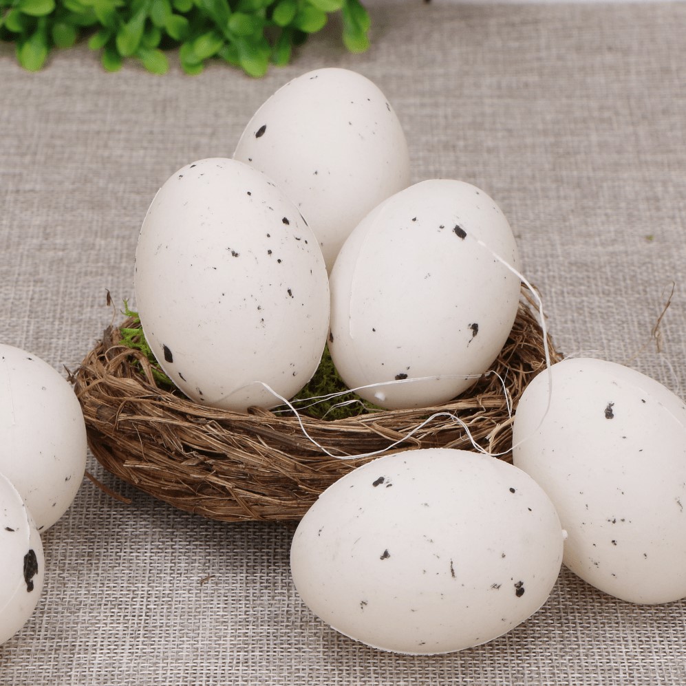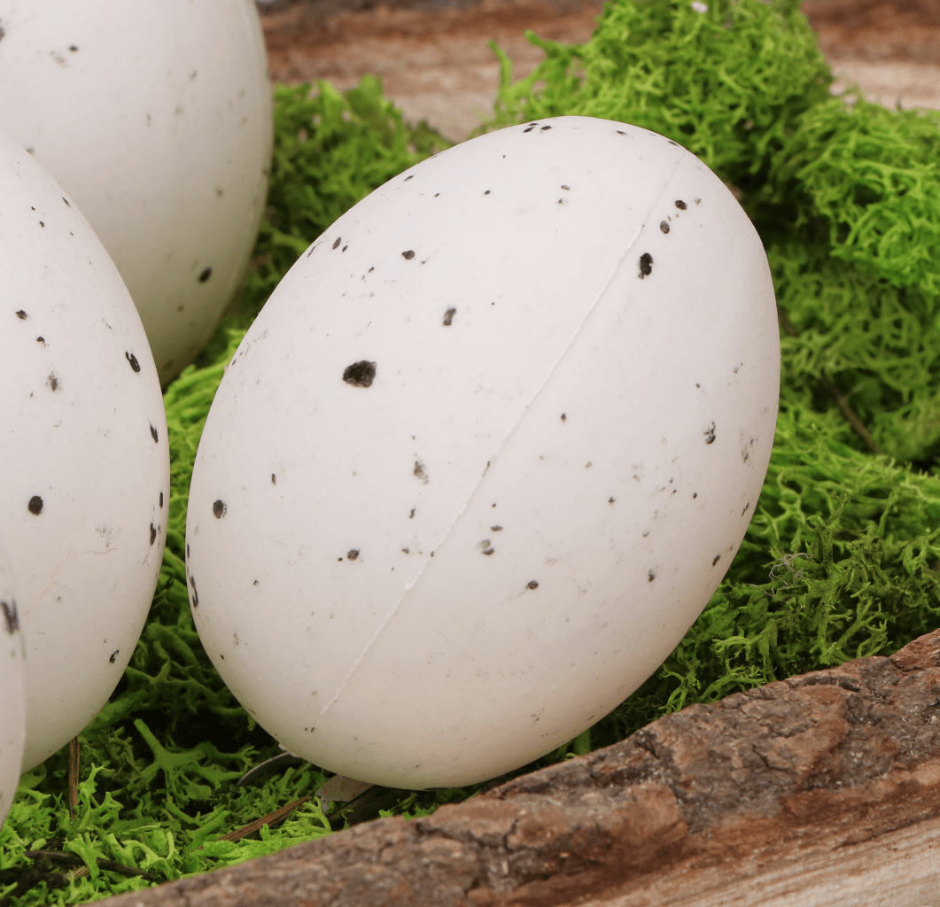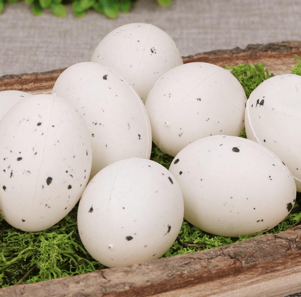 Jajka plastikowe nakrapiane białe 5cm 48 sztuk