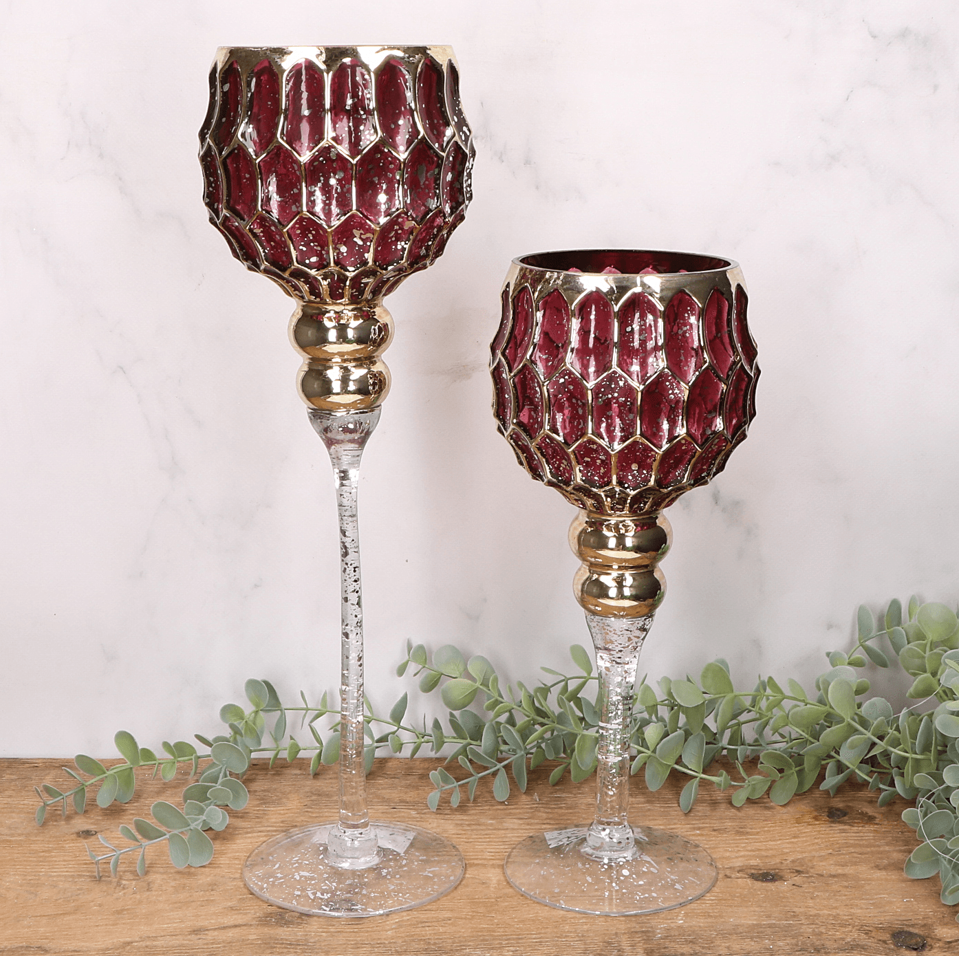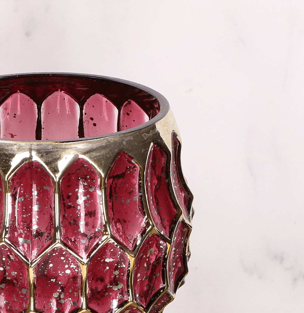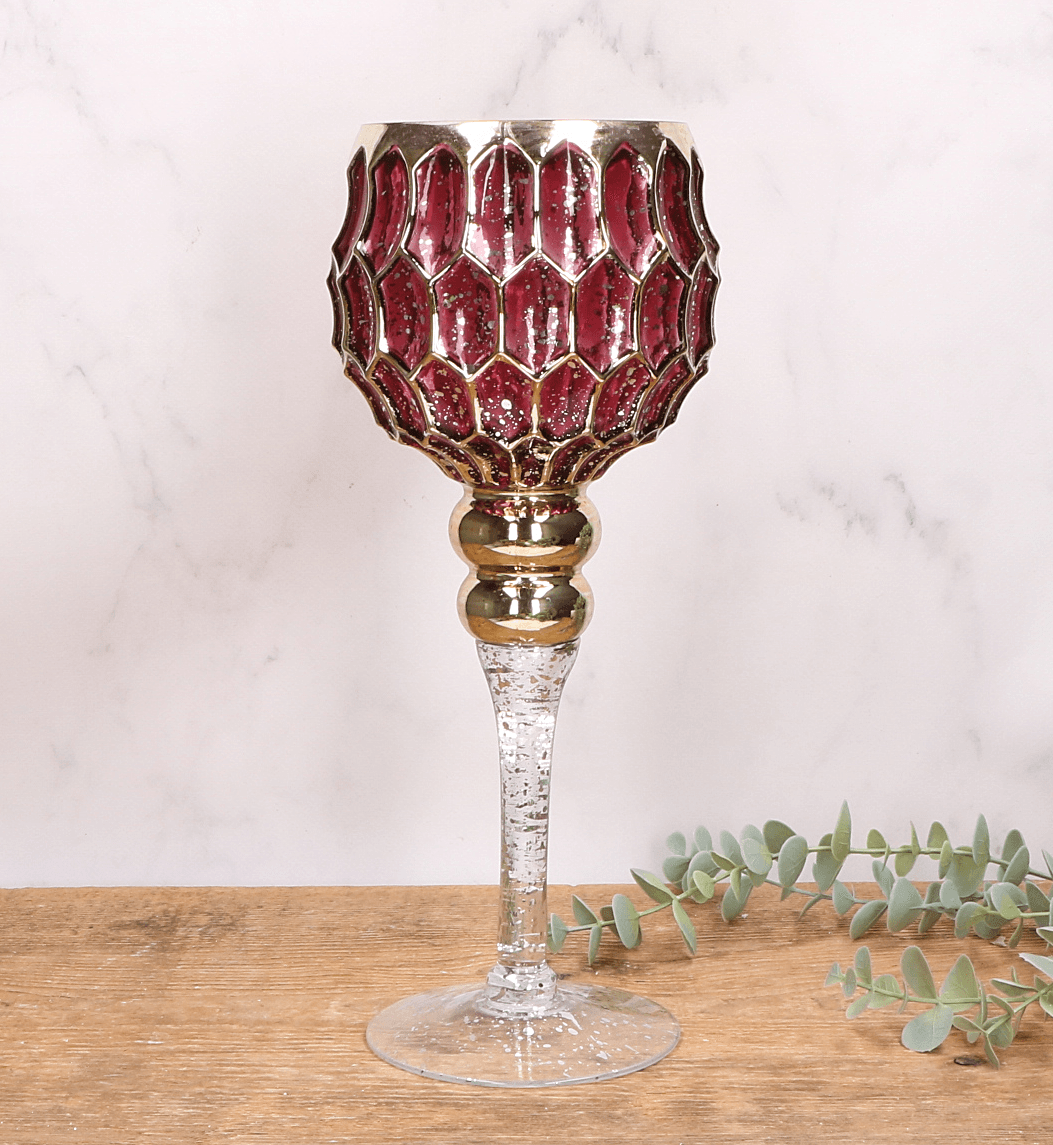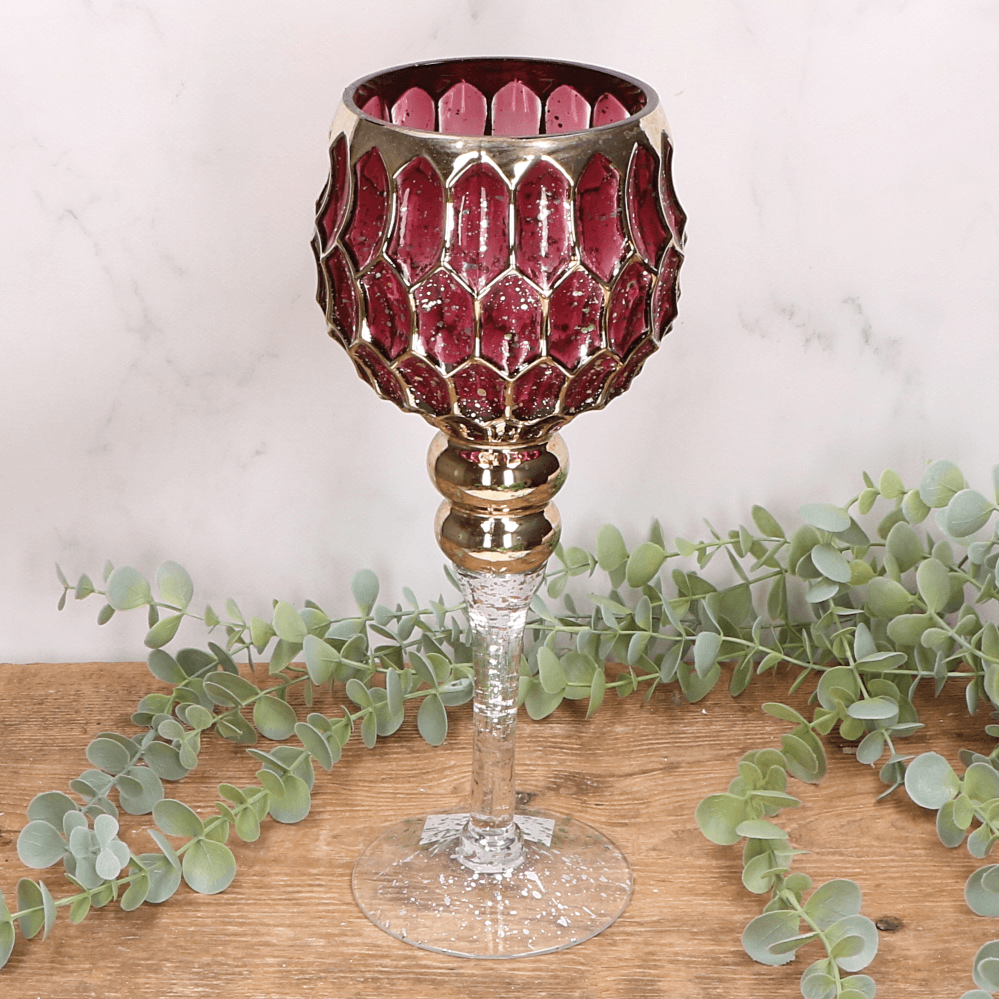 Kielich amarantowy świecznik dekoracyjny - złote zdobienia - 30cm