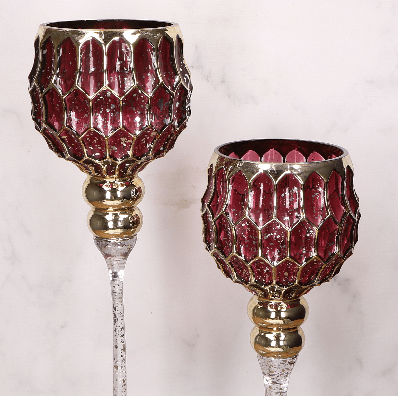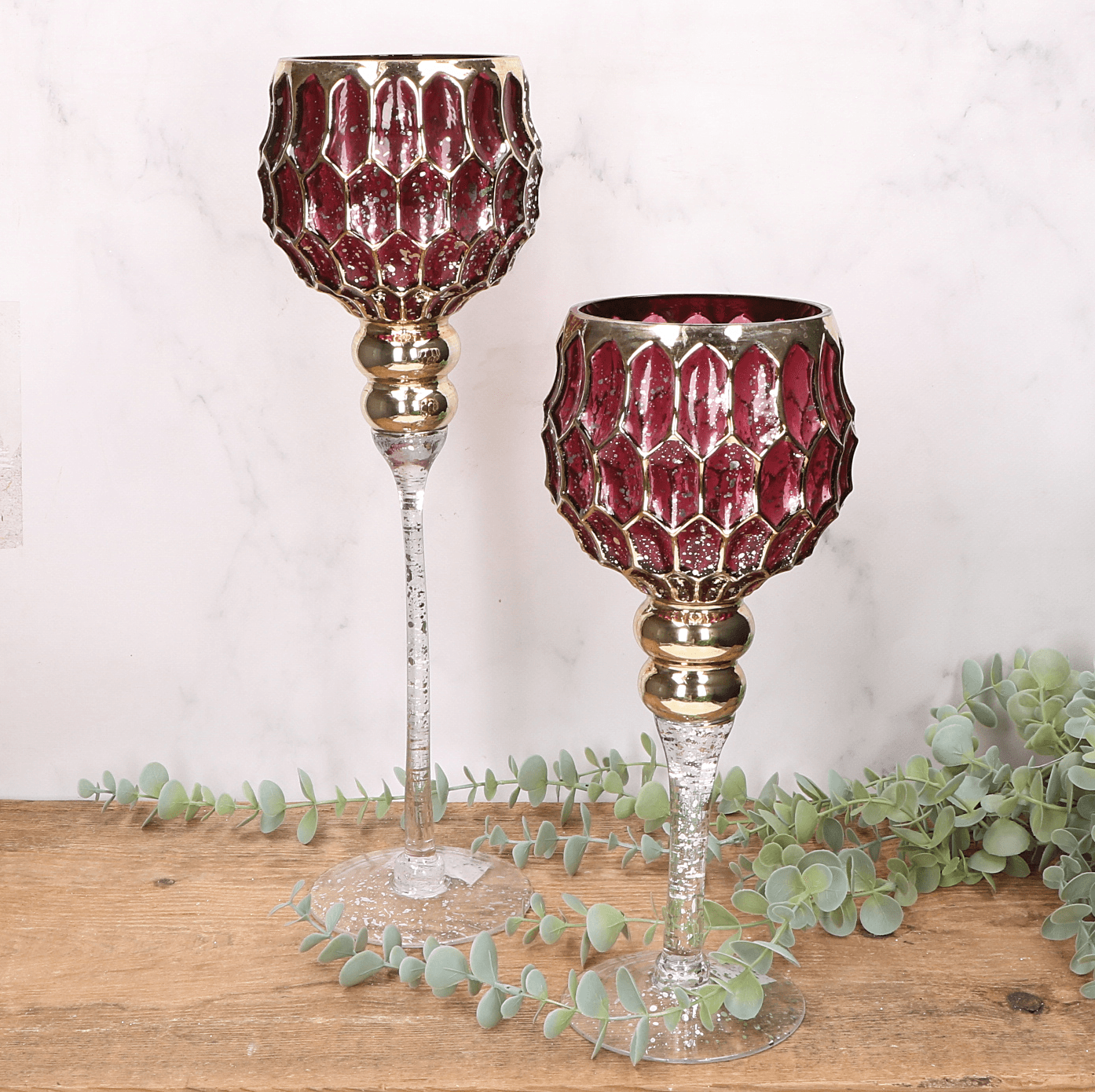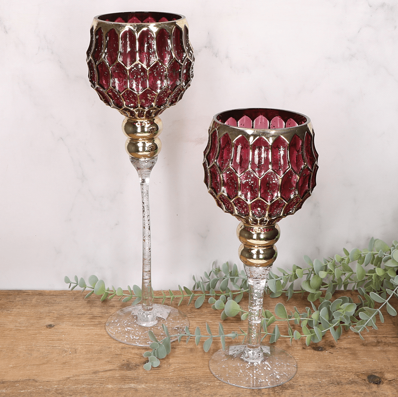 Kielich amarantowy świecznik dekoracyjny - złote zdobienia - 30cm