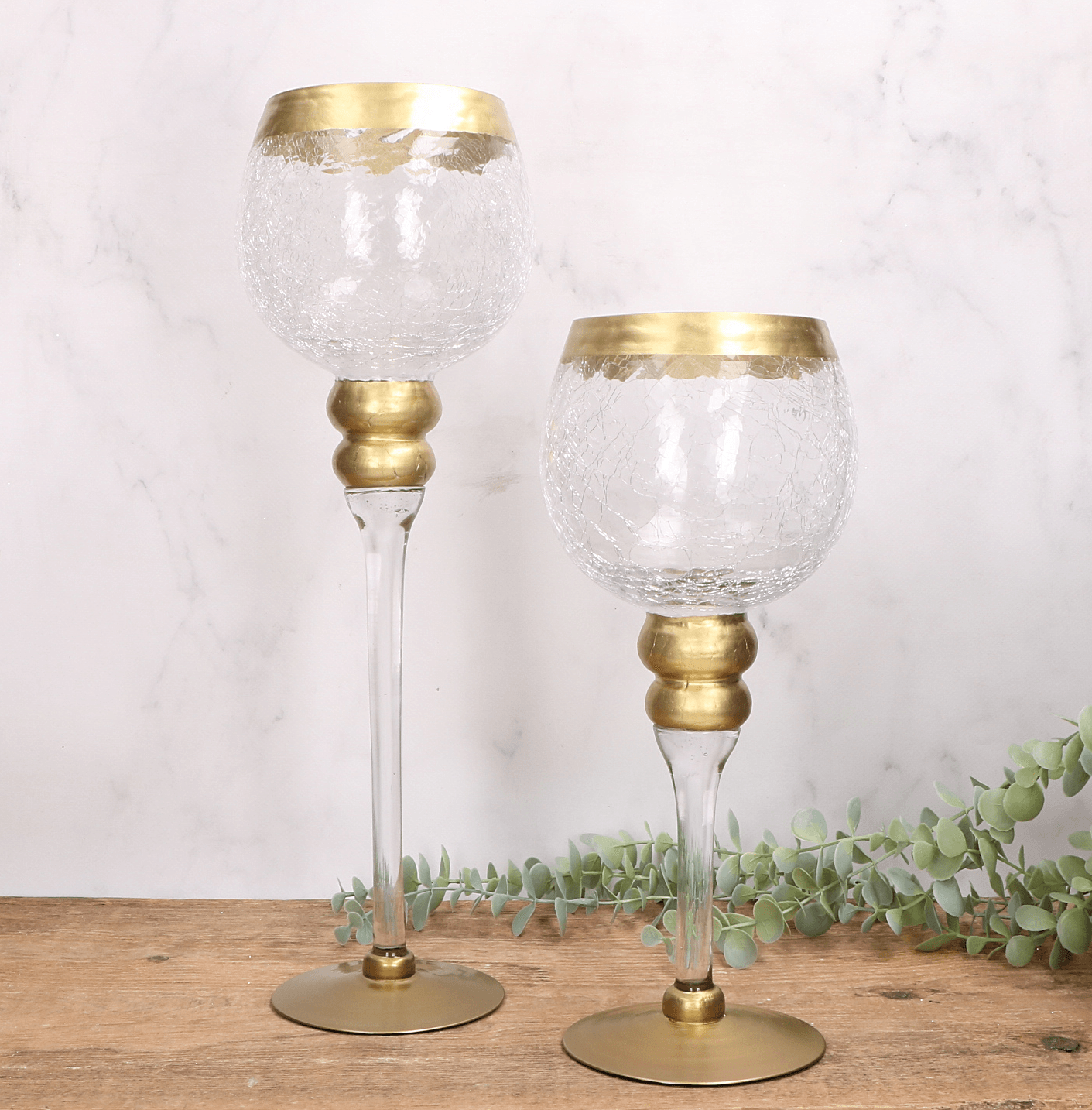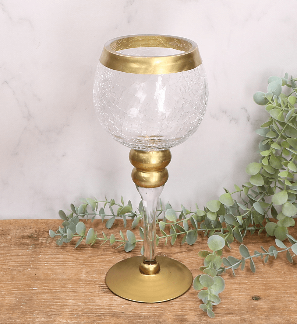 Kielich dekoracyjny świecznik - efekt pękniętego szkła - 30cm