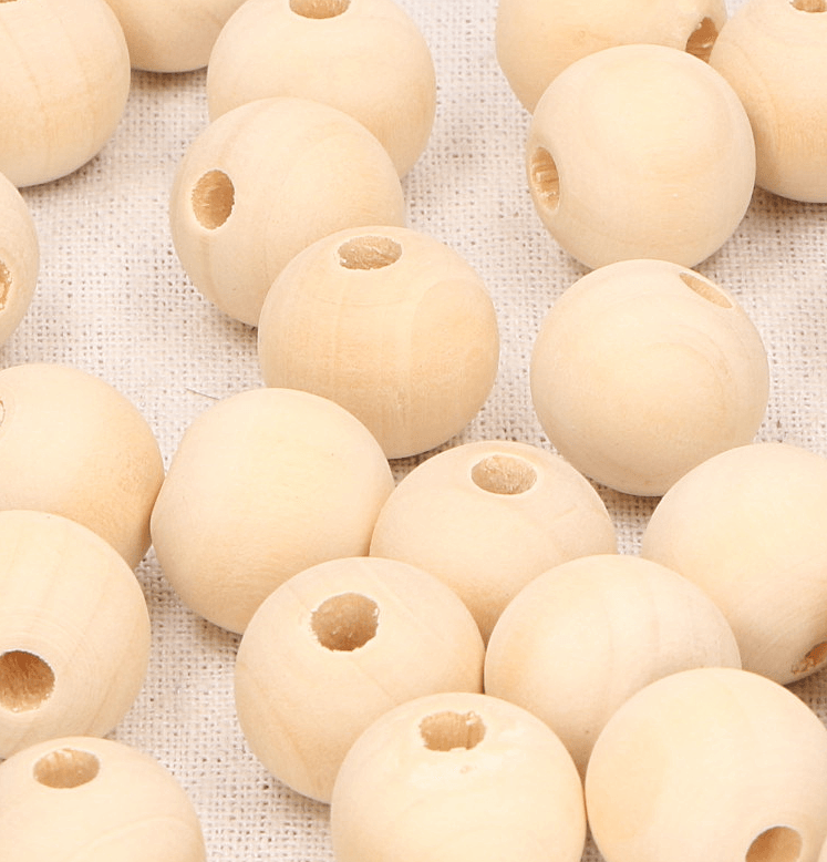 Drewniane koraliki do nawlekania 2 cm – naturalny kolor – 25 szt. – idealne do rękodzieła i dekoracji