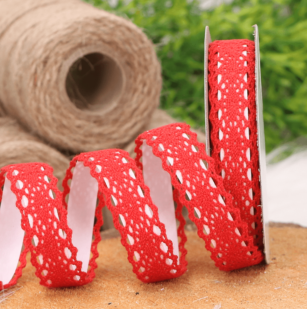Koronka bawełniana tasiemka samoprzylepna czerwona 4,5mb