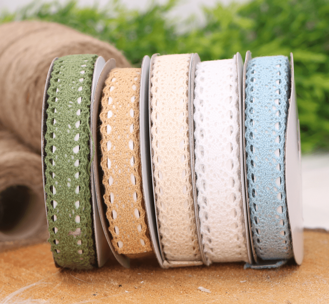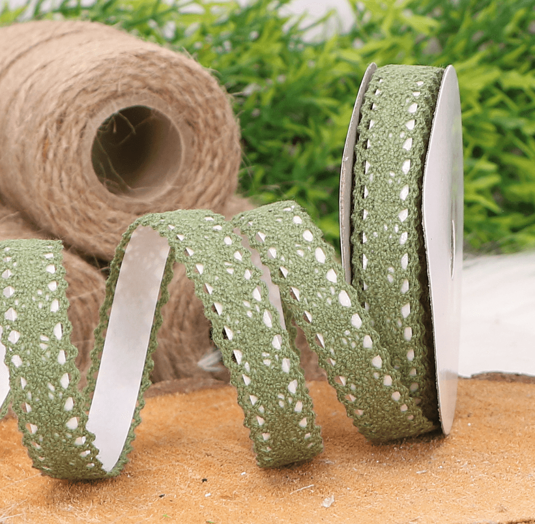 Koronka bawełniana tasiemka samoprzylepna zielona 4,5mb