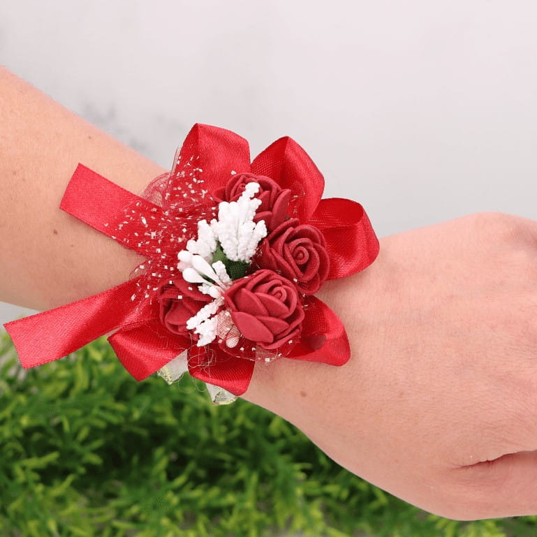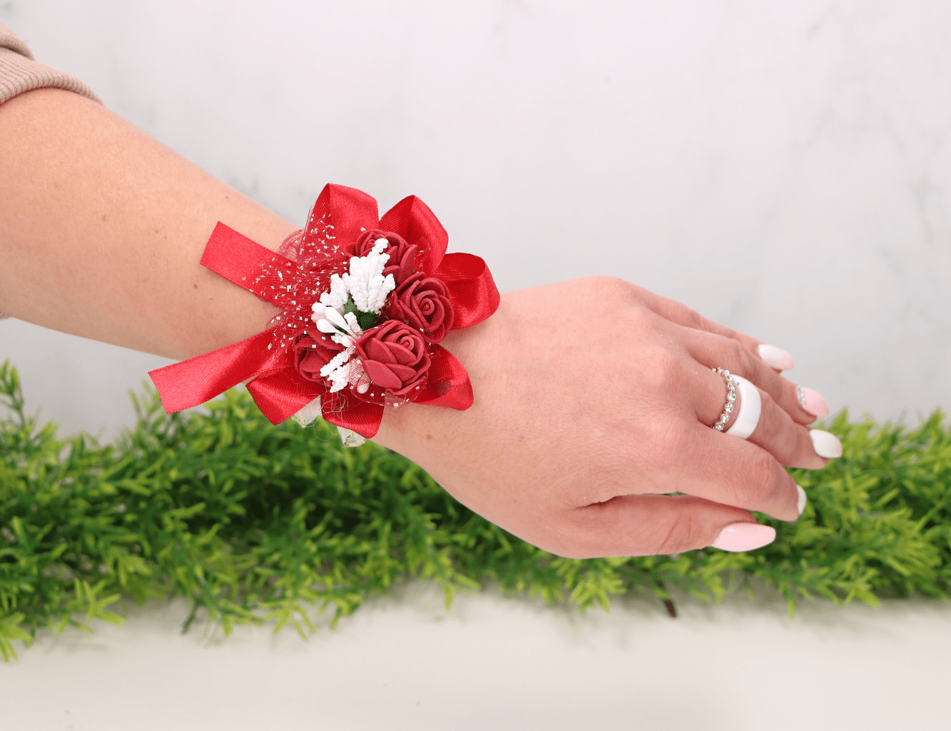 Korsarz na rękę kotylion bukiecik bordo+biel 1szt