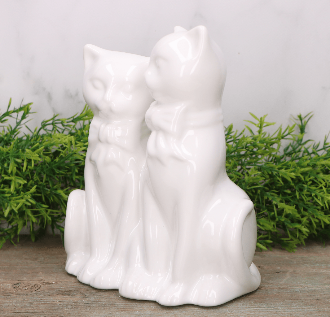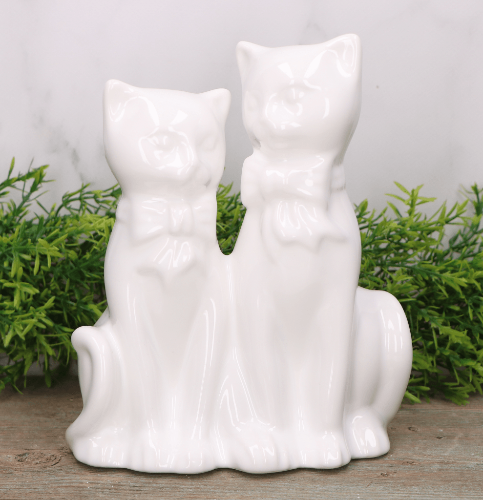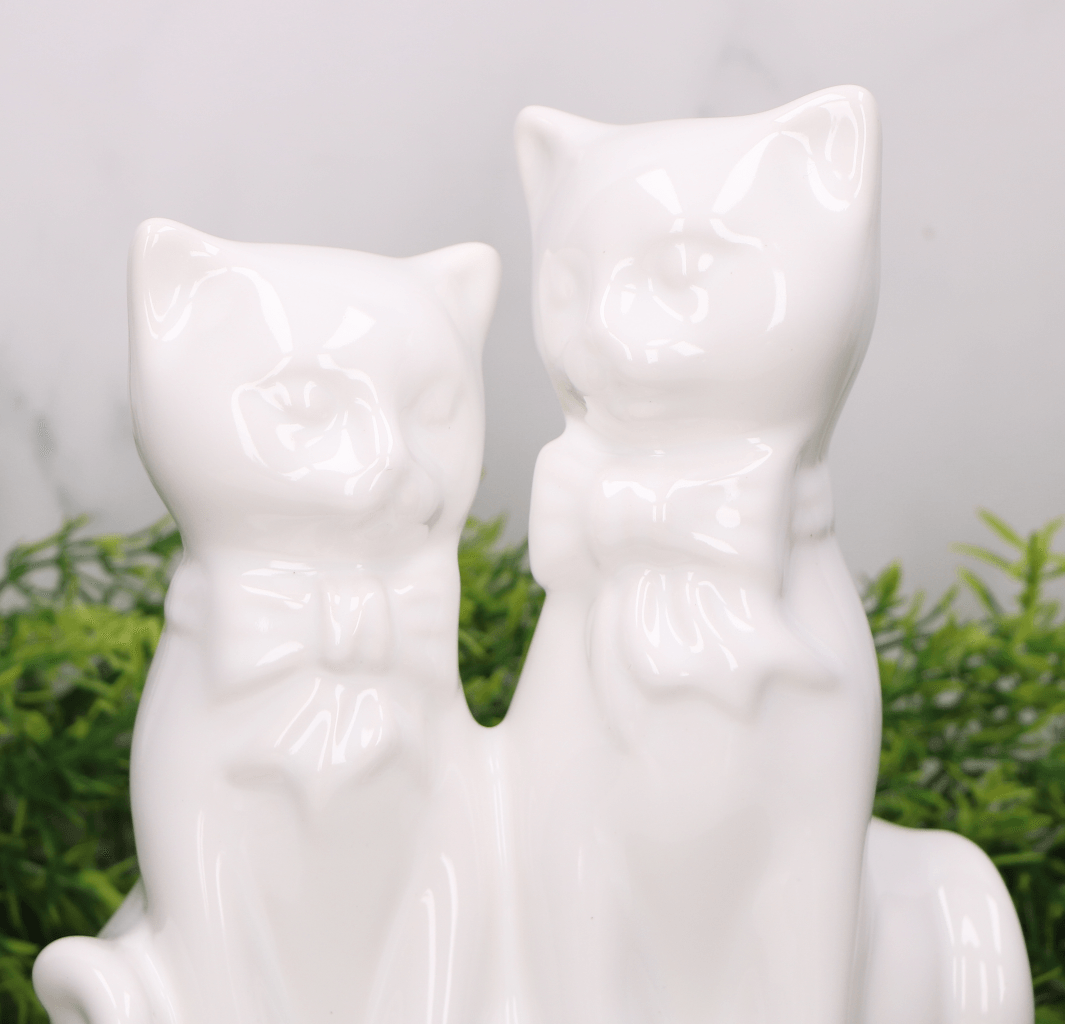 Koty bliźniacy ceramiczne figurka szkliwiona biel 21 x 16 cm