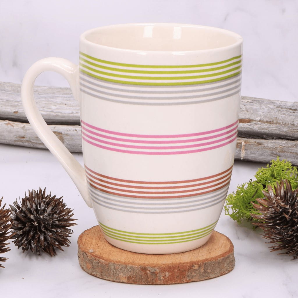 Kubek ceramiczny kremowy w kolorowe paski
