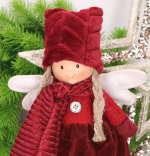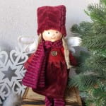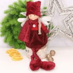 Wraz z przyjściem grudniowych, mroźnych wieczorów wszyscy z niecierpliwością zaczynamy odliczać dni, do najbardziej wyjątkowych świąt w roku, którymi są Święta Bożego Narodzenia. Są to święta pełne ciepła i miłości. Nierozłącznym elementem tych pięknych świąt są dekoracje świąteczne, które stwarzają w naszych domach magiczną atmosferę bożonarodzeniową. Ciekawym pomysłem na tegoroczny wystrój świąteczny, jest siedząca laleczka ubrana w urocze, aksamitne, bordowe materiałowe ogrodniczki oraz puchatą czapeczkę i szalik w paski, który dzięki swojej subtelności idealnie skomponuje się z innymi świątecznymi dekoracjami.